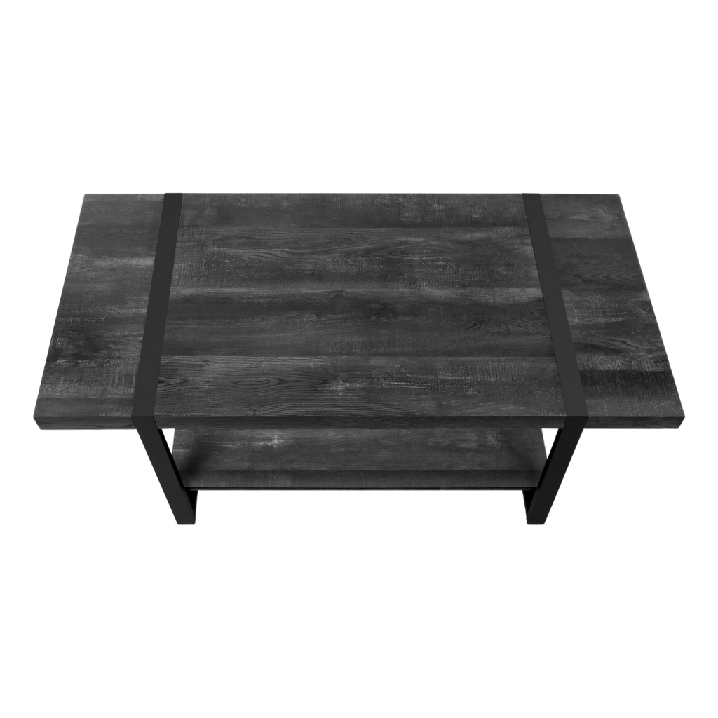 A 47.25" rectangular coffee table featuring a reclaimed-wood black look and a sturdy black metal frame, designed with an industrial farmhouse style and a functional two-tier layout.