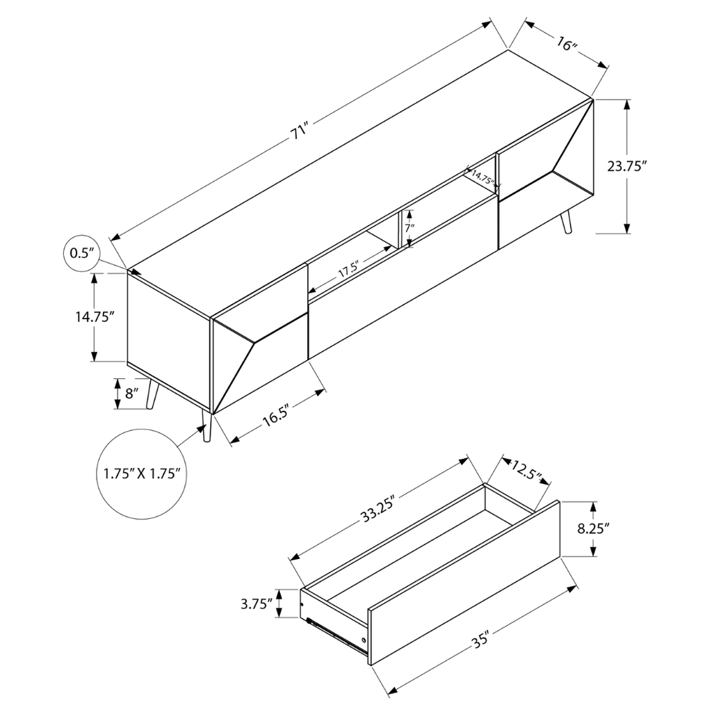 Built with solid wood legs and a durable easy-clean top, this 72" console is engineered for lasting stability. The dual cable-management openings at the back maintain a clean, organized appearance. Bay is the ideal centerpiece for a modern or retro-inspired space.