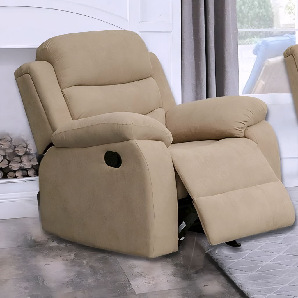 The Casa set is built for comfort from the ground up. The soft beige fabric offers a cozy, relaxed texture, while the full-support back cushions and padded armrests create a welcoming seating profile. The manual reclining system allows smooth transitions into a fully relaxed position, perfect for reading, movie nights, or afternoon naps.