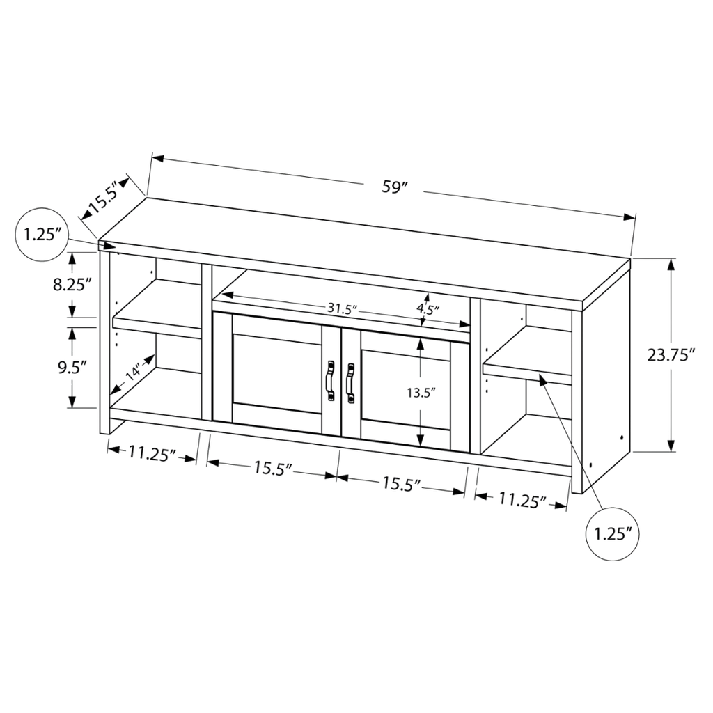 • 5 open shelves for A/V components & décor