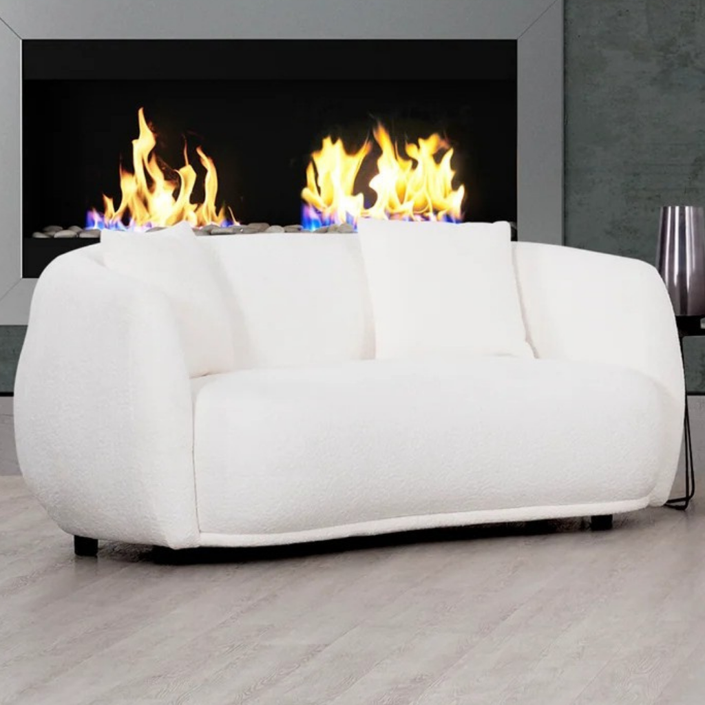 The Elma White Collection brings modern sculptural elegance to your living space. Wrapped in premium boucle fabric, each piece offers an ultra-soft, inviting texture while maintaining a clean, contemporary silhouette. The sofa, loveseat, and chair all feature plush high-density foam, creating a supportive yet cloud-like seating experience. With its organic curves and neutral ivory tone, the Elma set blends seamlessly into minimalist, modern, Scandinavian, or luxe interiors. Built with a solid wood and plywood frame, this collection pairs aesthetic appeal with long-lasting durability.