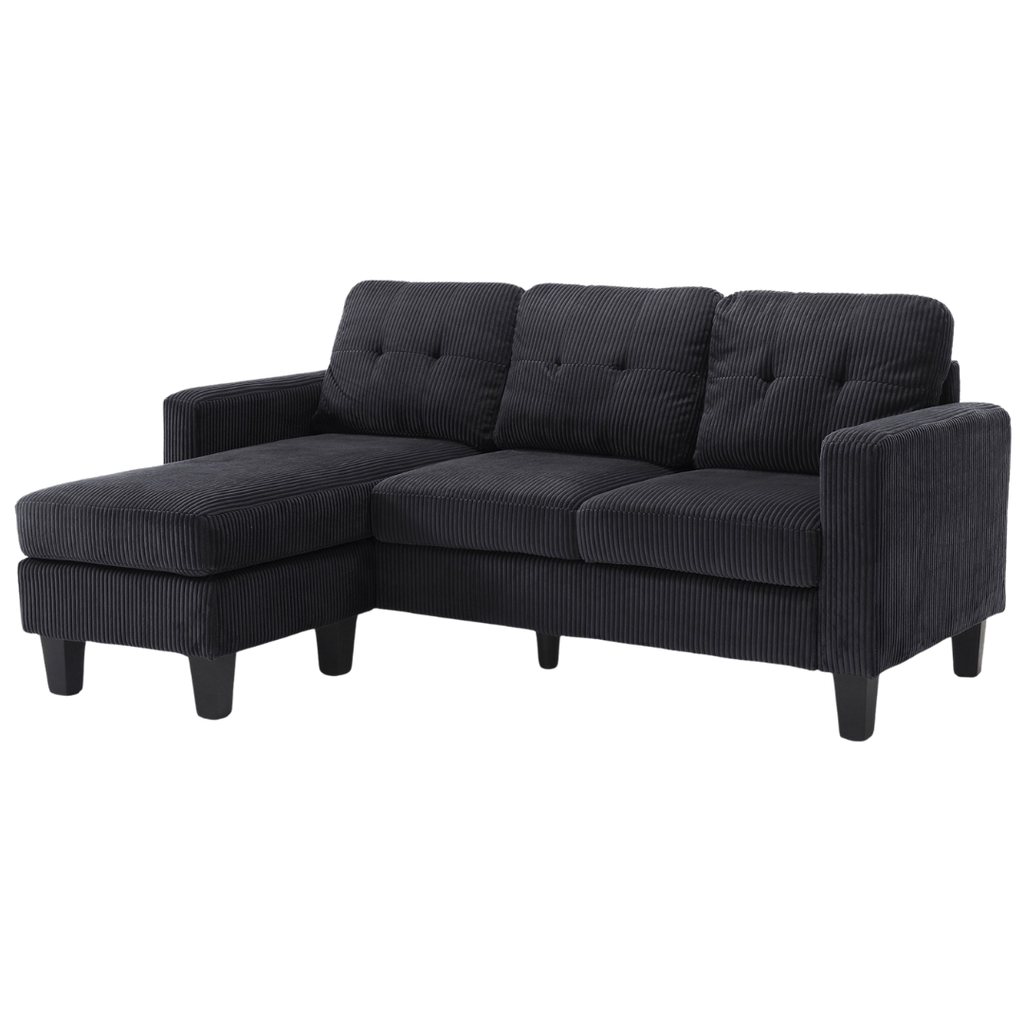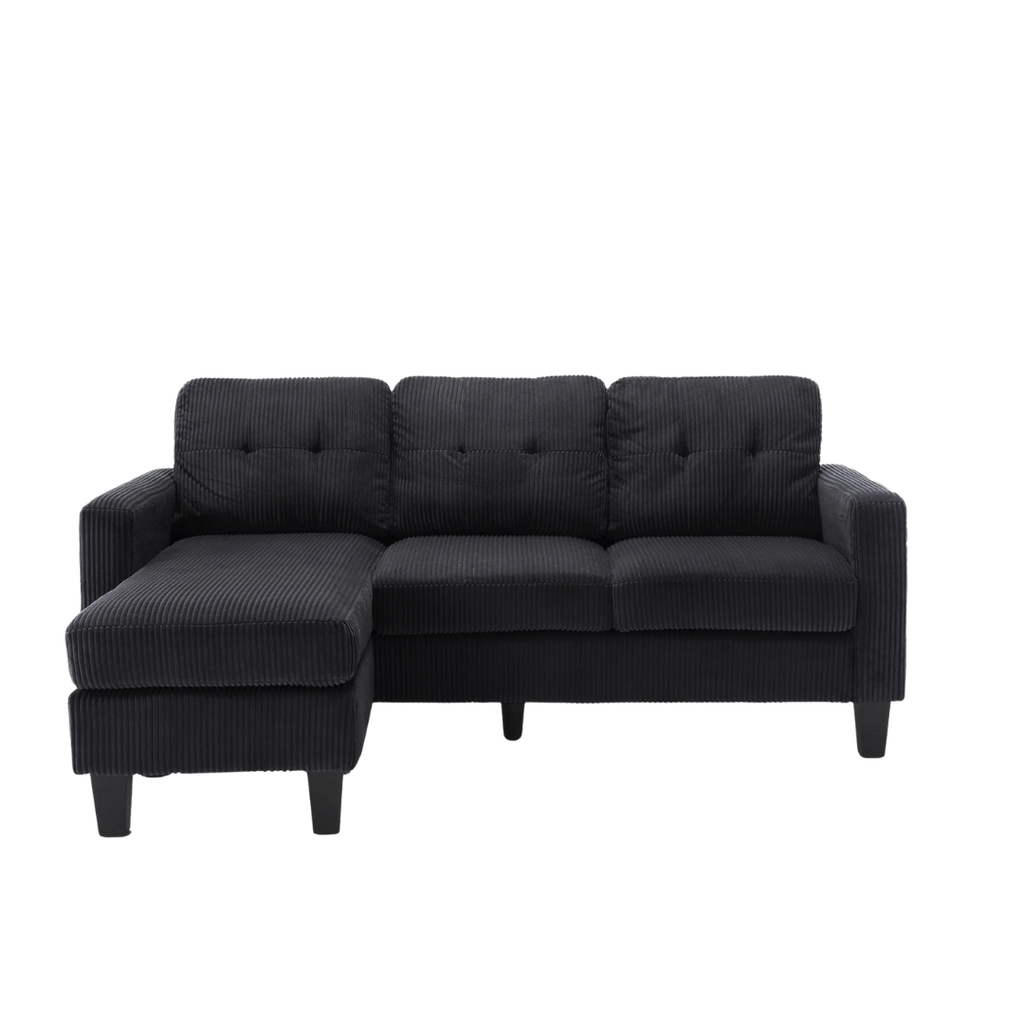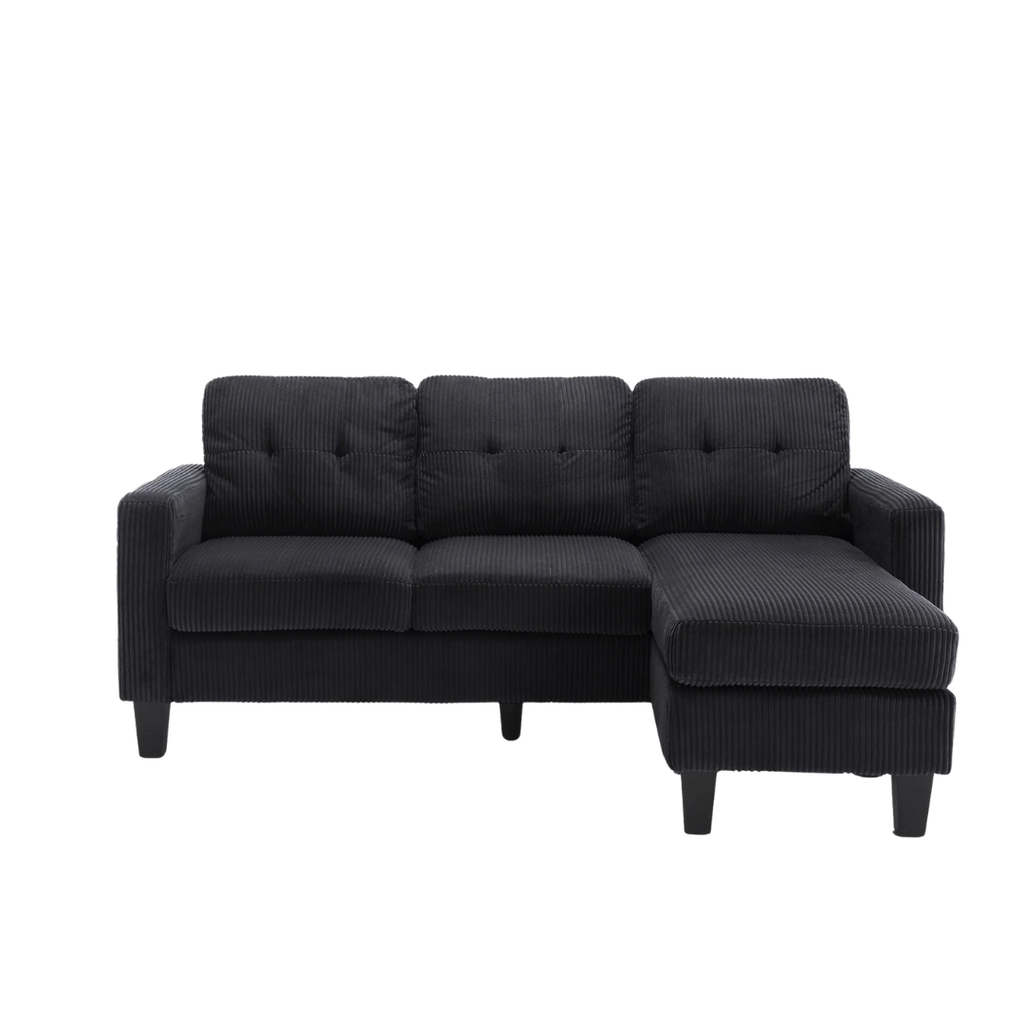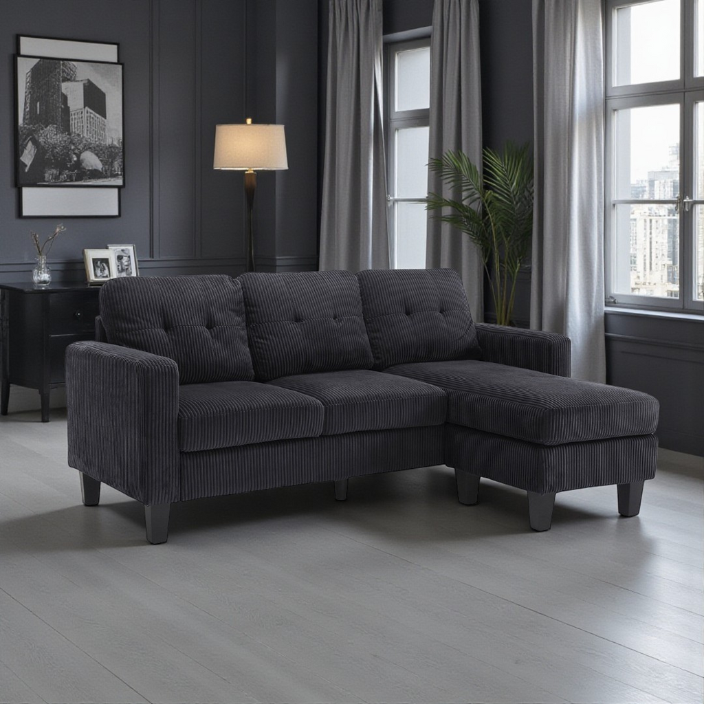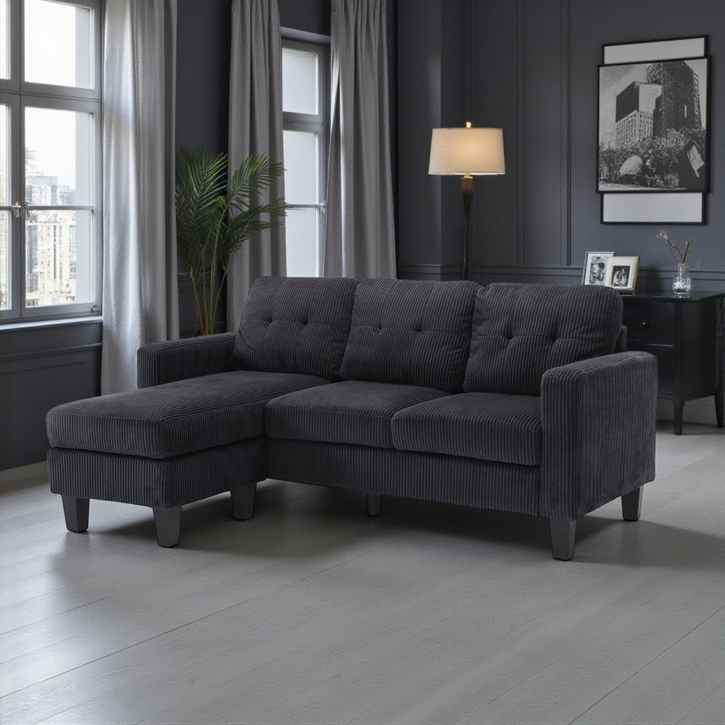 Ideal for customers wanting a bold black corduroy fabric and a compact, functional layout.