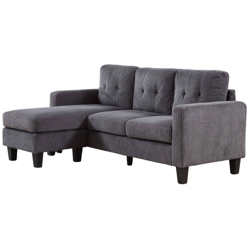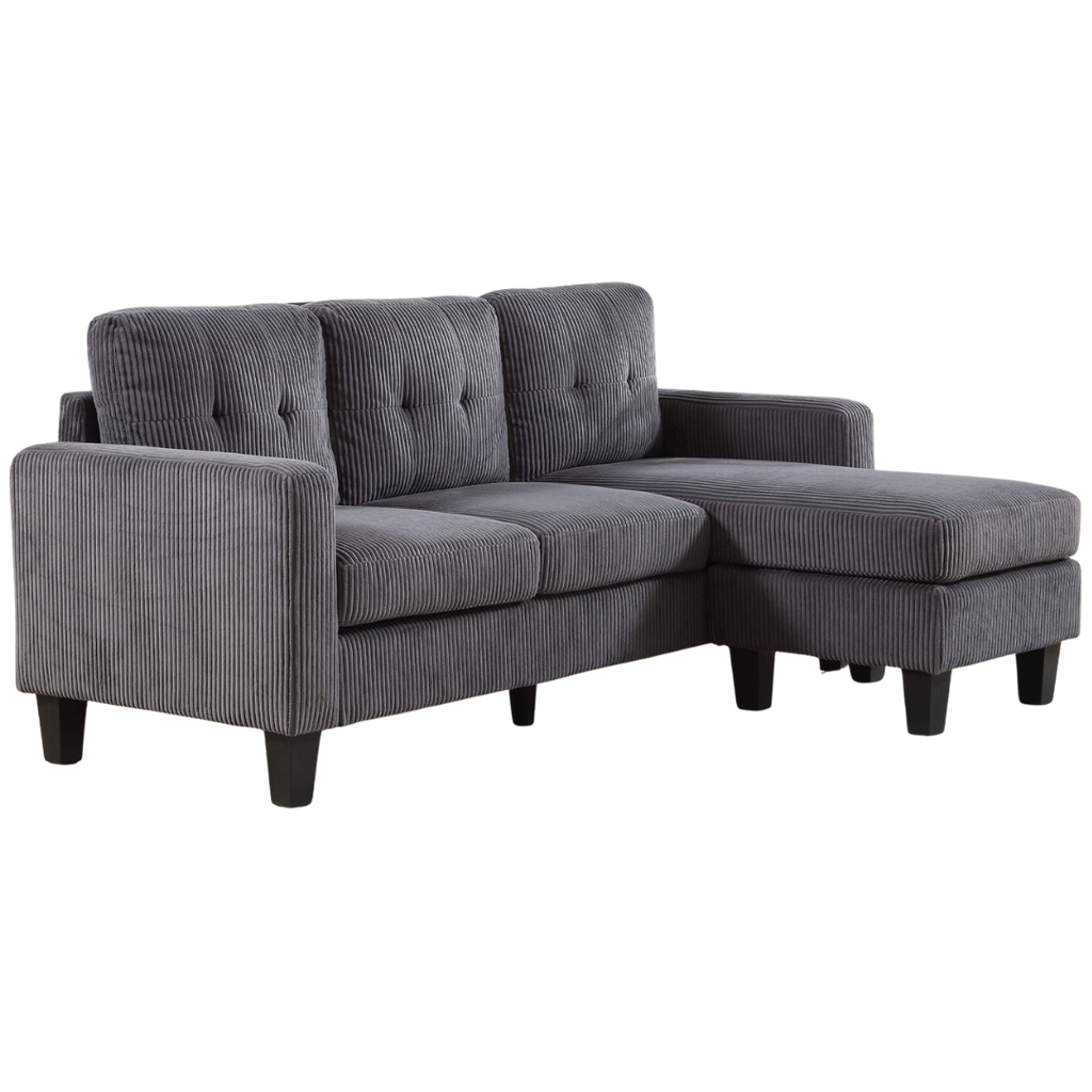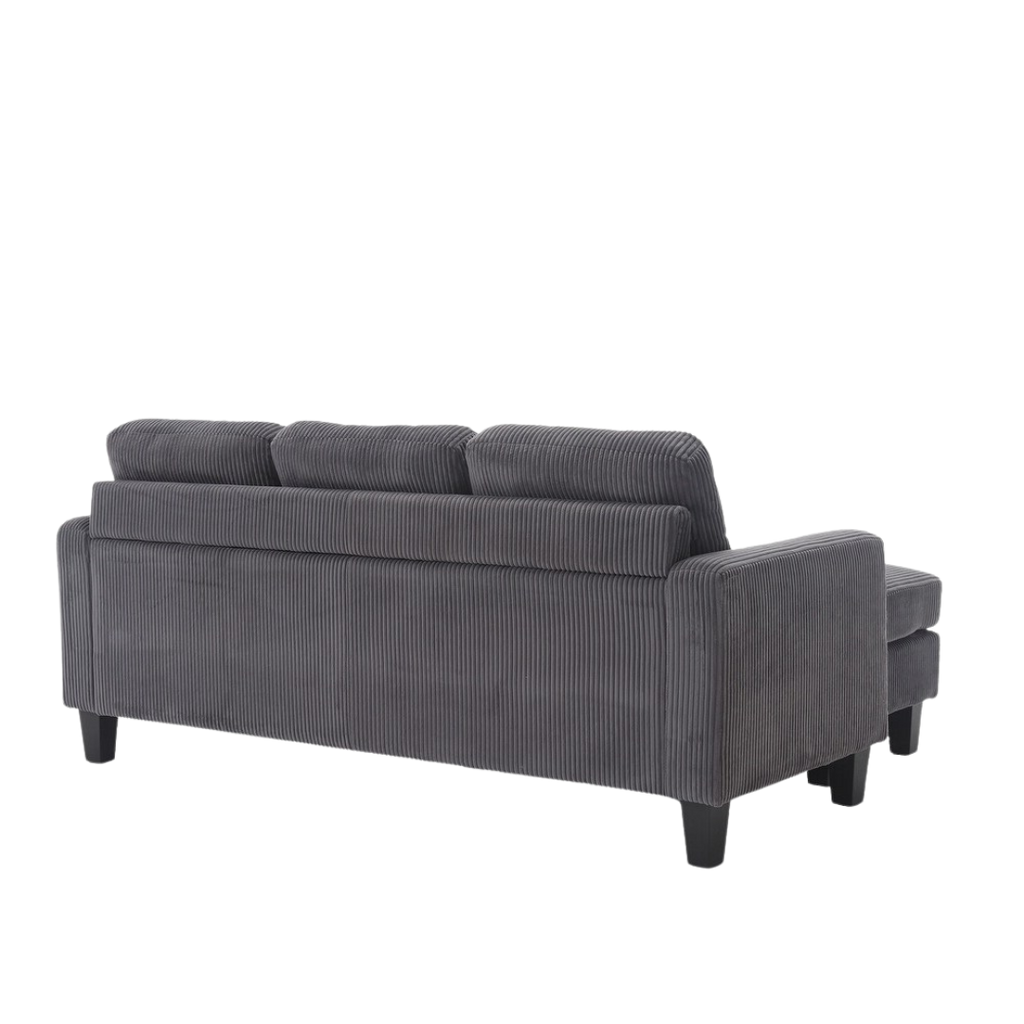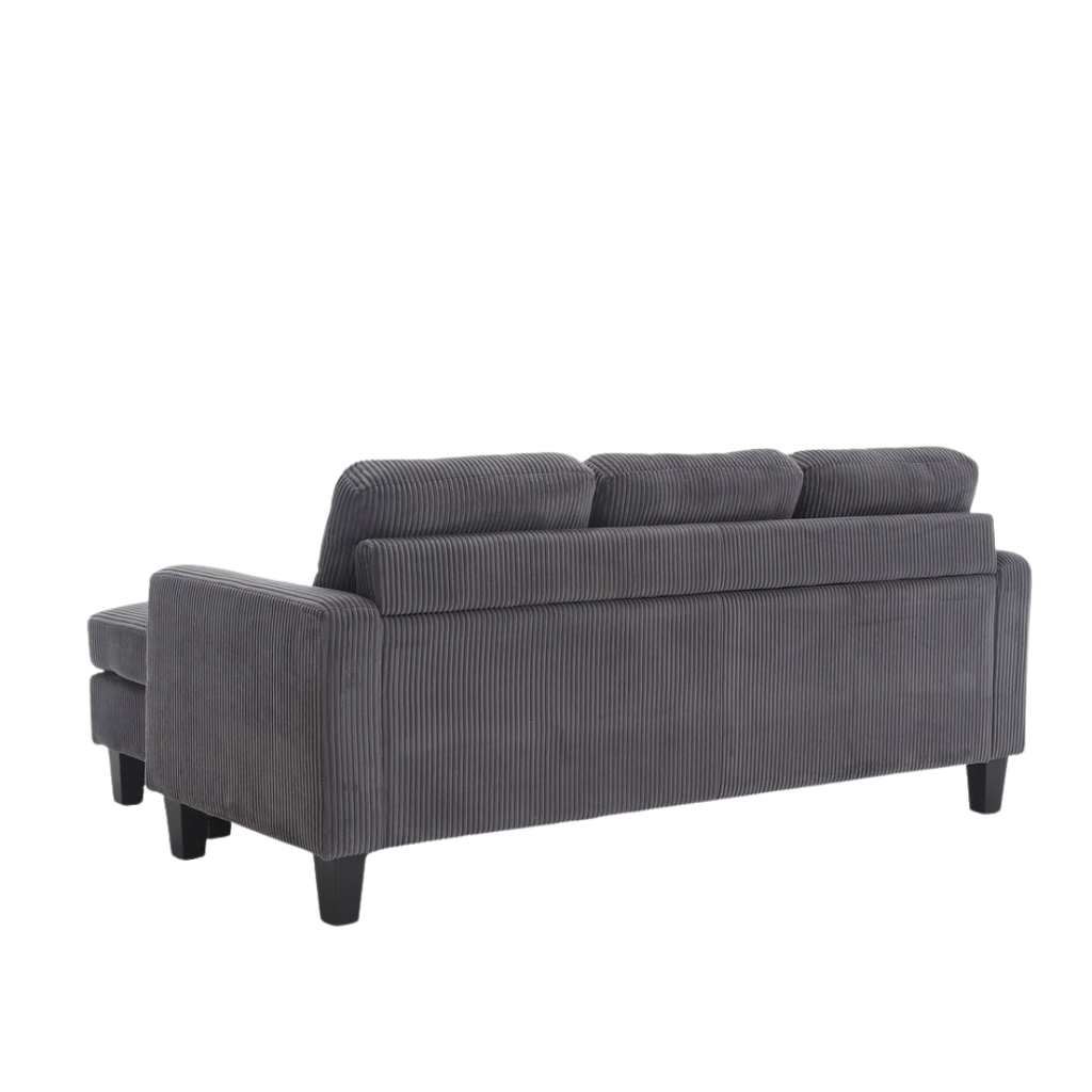 The grey corduroy fabric introduces texture and modern flair, and the supportive seating ensures daily comfort. Ideal for urban apartments, studios, and compact living rooms.