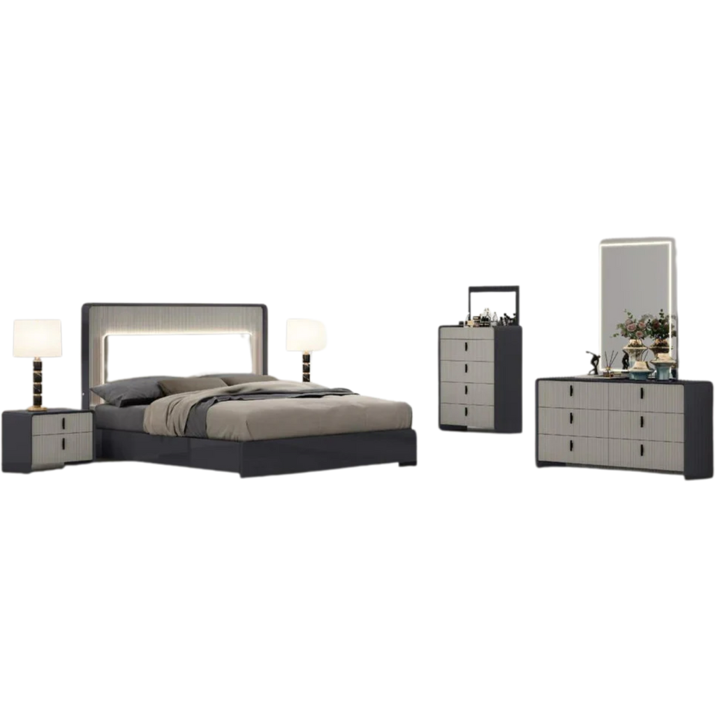The Ember King Bedroom Set blends urban style with practical luxury. Featuring a modern LED headboard, flat panel fronts, and a neutral two-tone palette, this set brings balance and sophistication to your space.