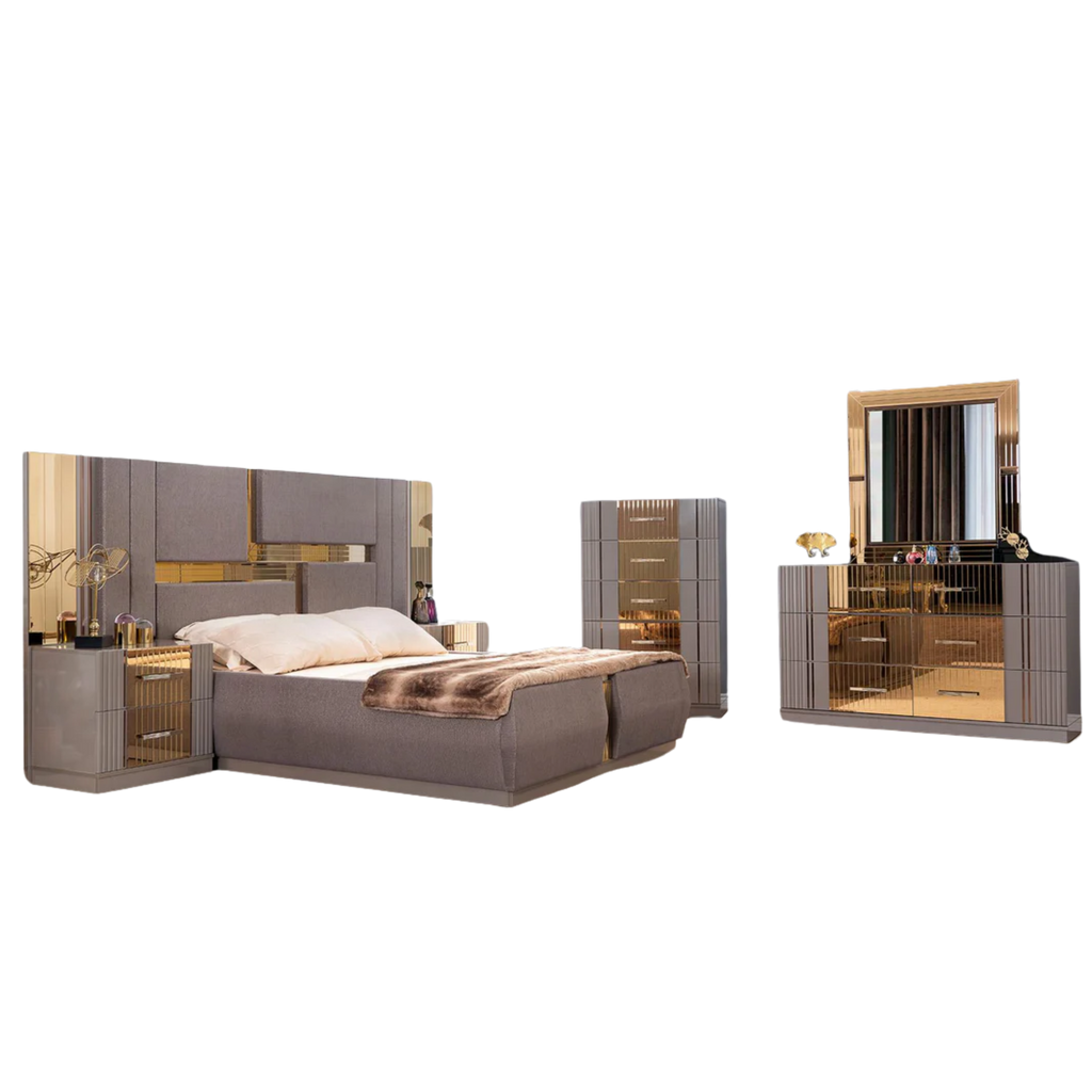 The Lorenzo King Bedroom Set is a masterful blend of comfort, luxury, and timeless design. With its tufted king-size bed, finely carved details, and ample storage, this set is crafted to elevate your bedroom to royal standards.
