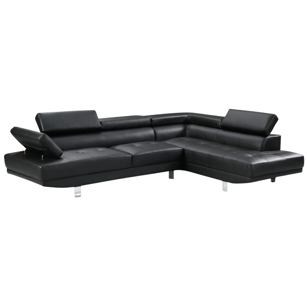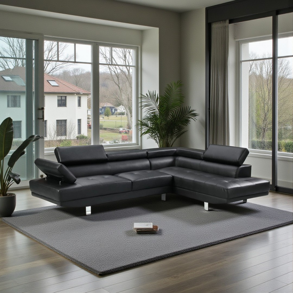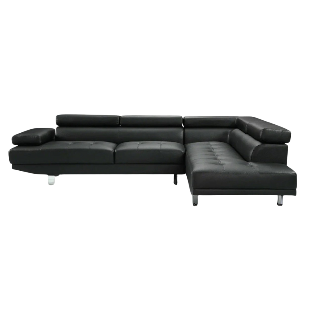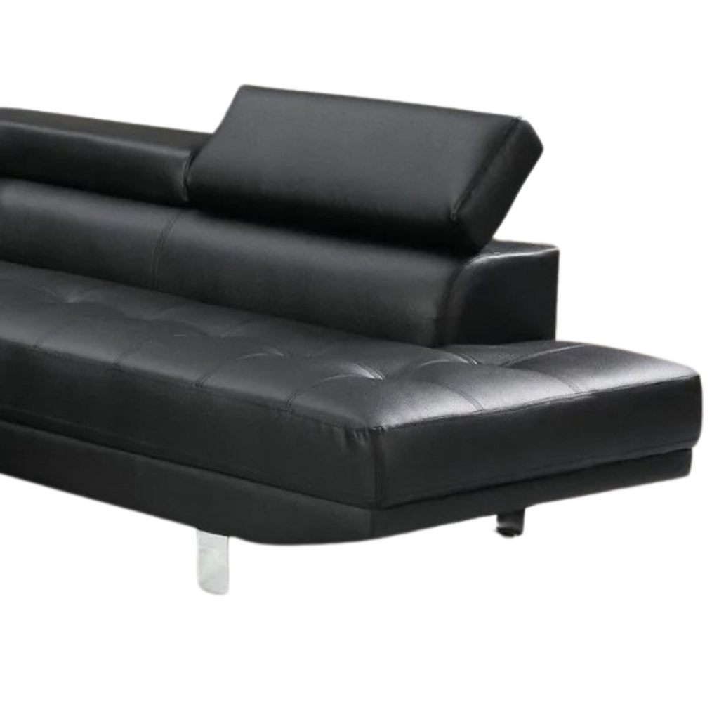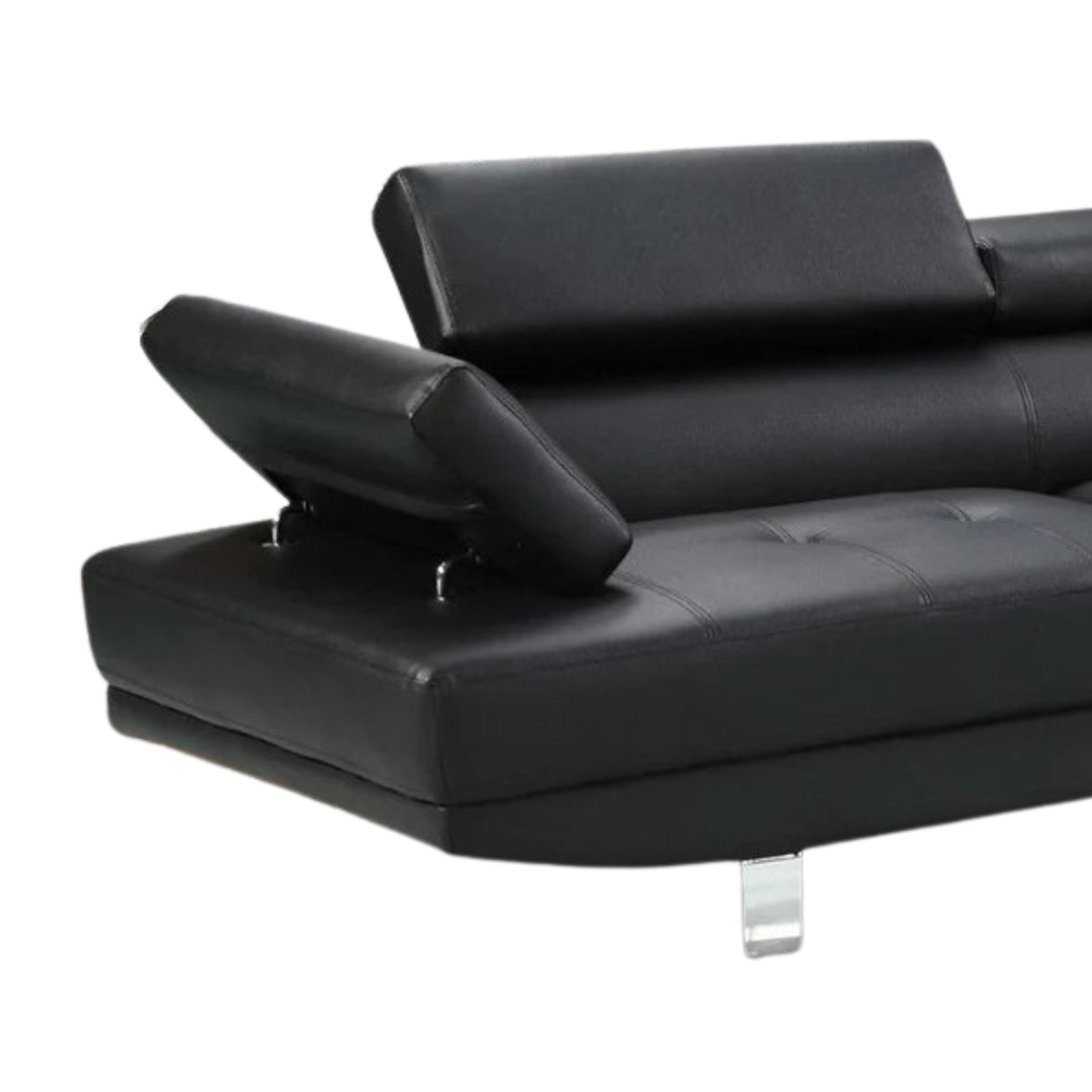 The Kivo sectional blends function and design with its adjustable headrests, generous seating, and clean modern silhouette. Its black faux leather finish brings a bold, upscale feel while ensuring easy cleaning and durability.