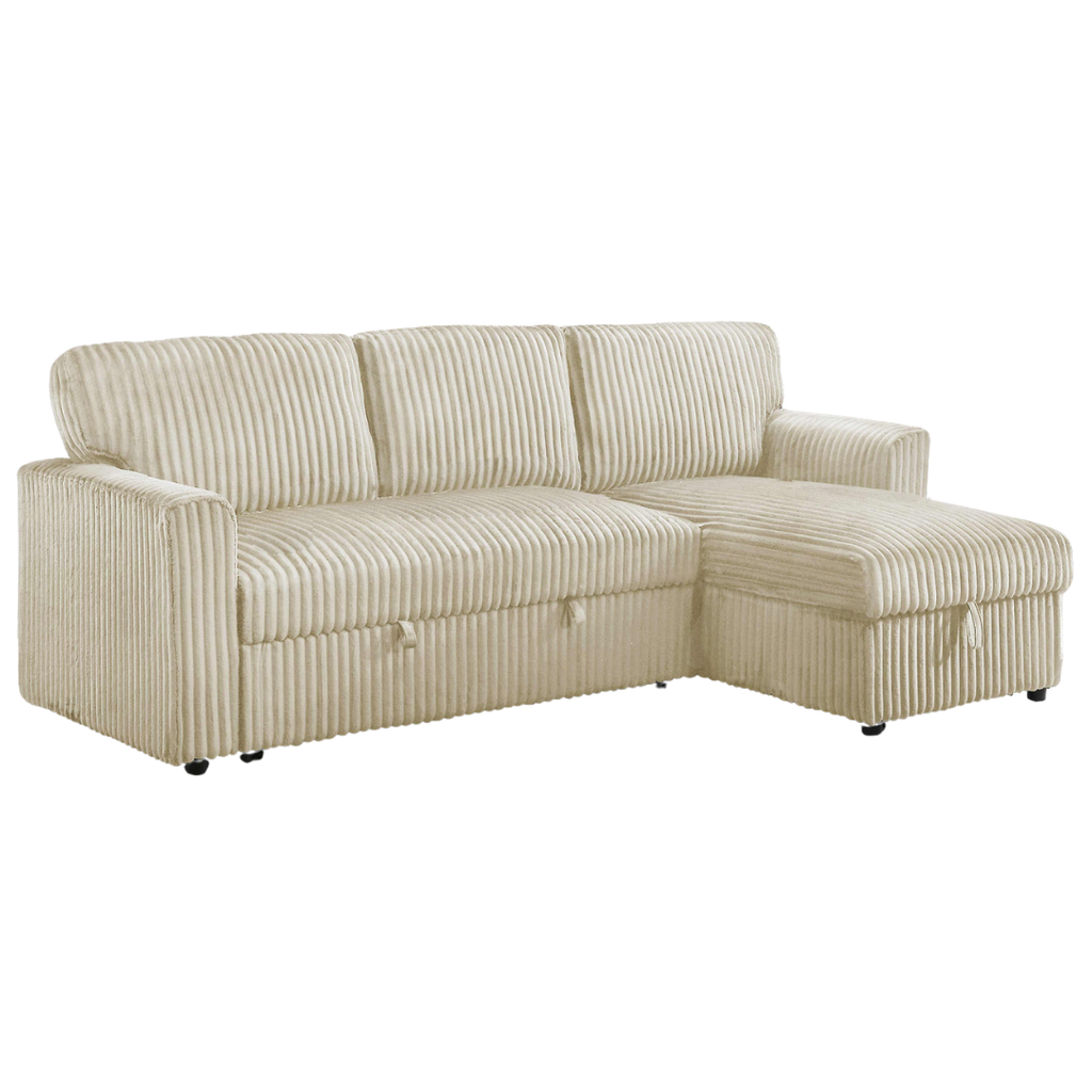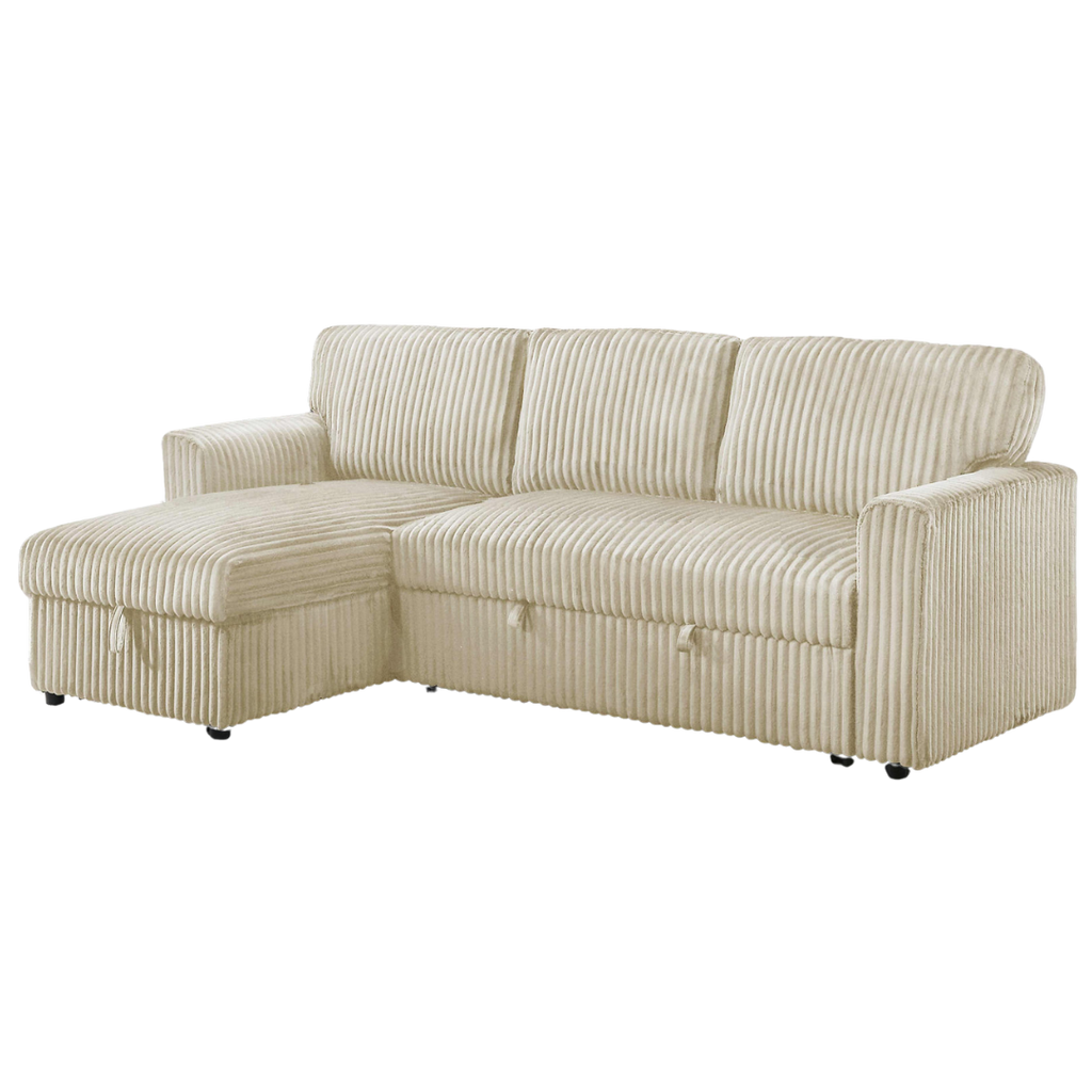 The Loremo Cream sectional brings soft texture and warm tones into your living space. With its reversible chaise, you can configure it to fit any layout. The pull-out sleeper converts the sectional into a bed instantly, while the lift-up storage keeps your essentials hidden but accessible.