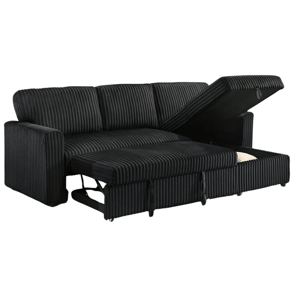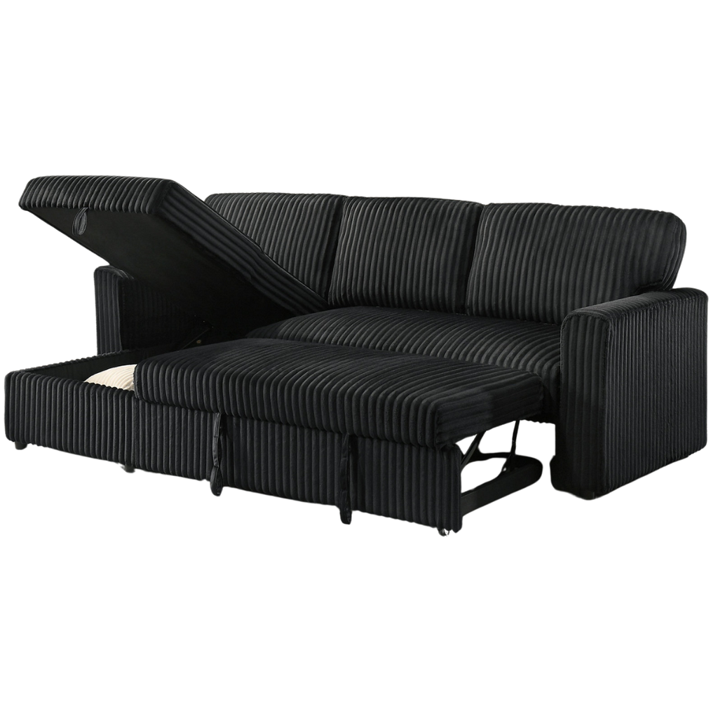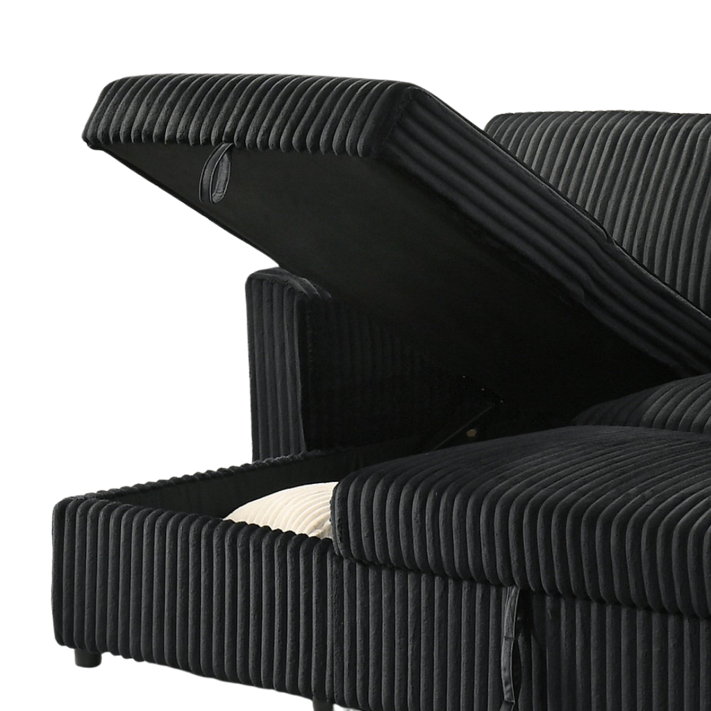 A reversible corduroy sofa bed sectional with plush seating, lift-up storage, and a smooth pull-out sleeper—designed for comfort, versatility, and modern living.