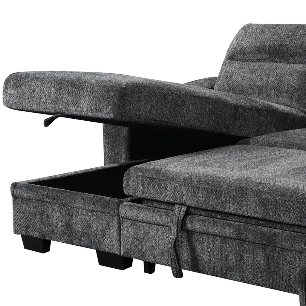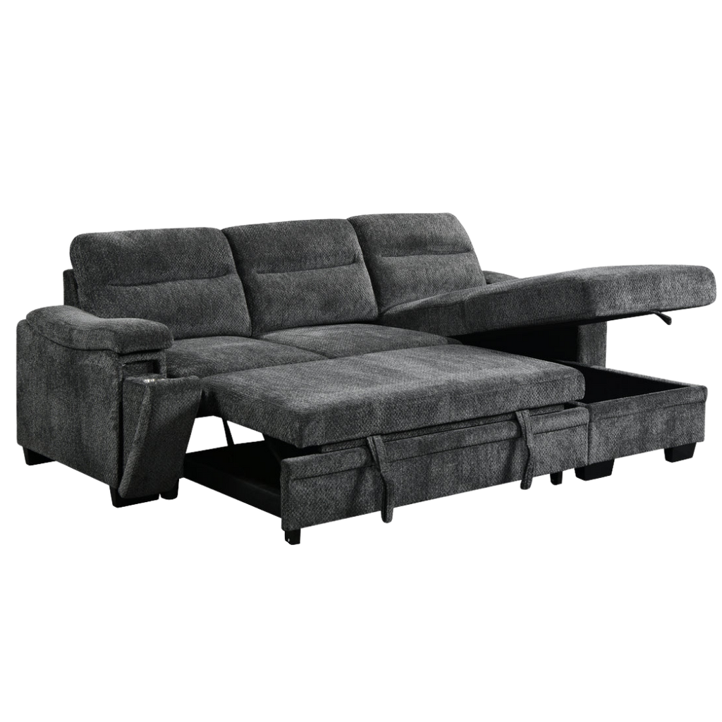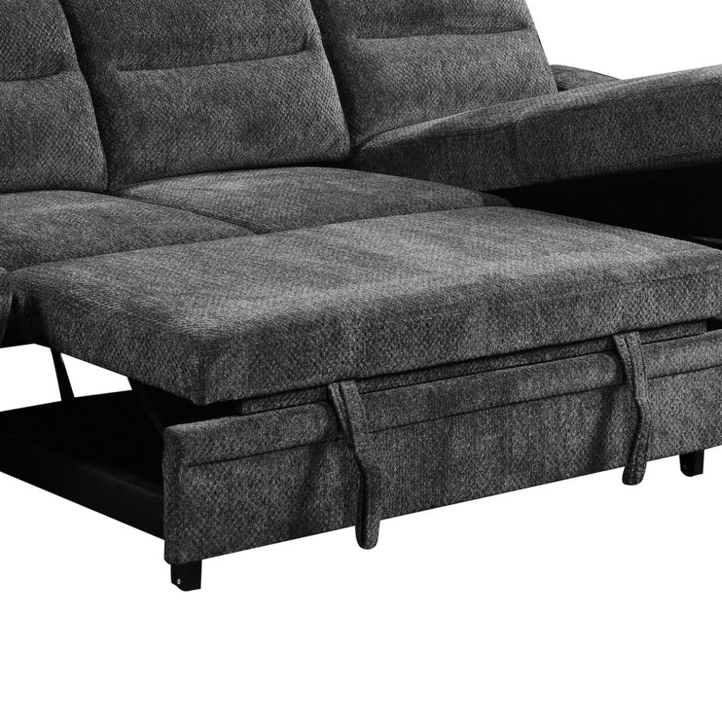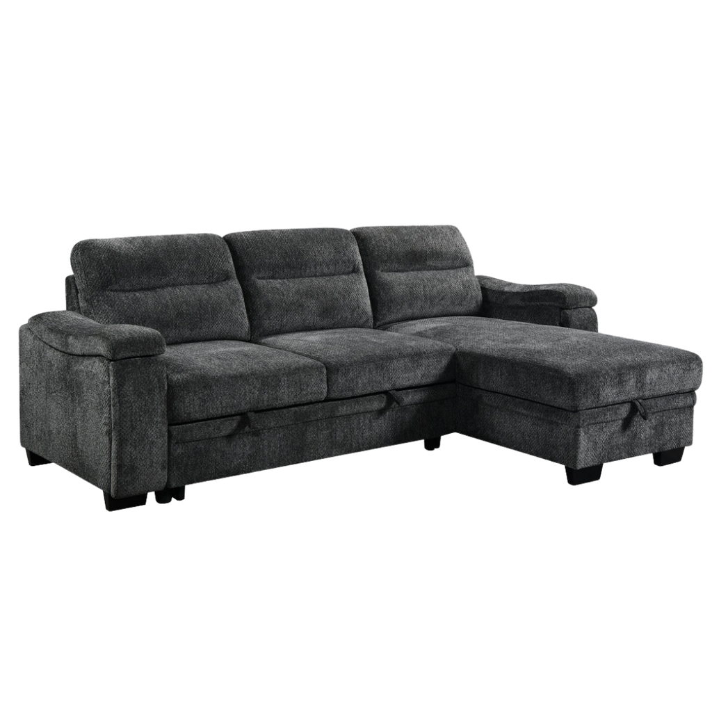 A multifunctional sleeper sectional offering storage, a pull-out bed, and a reversible chaise, designed for comfort and modern living.