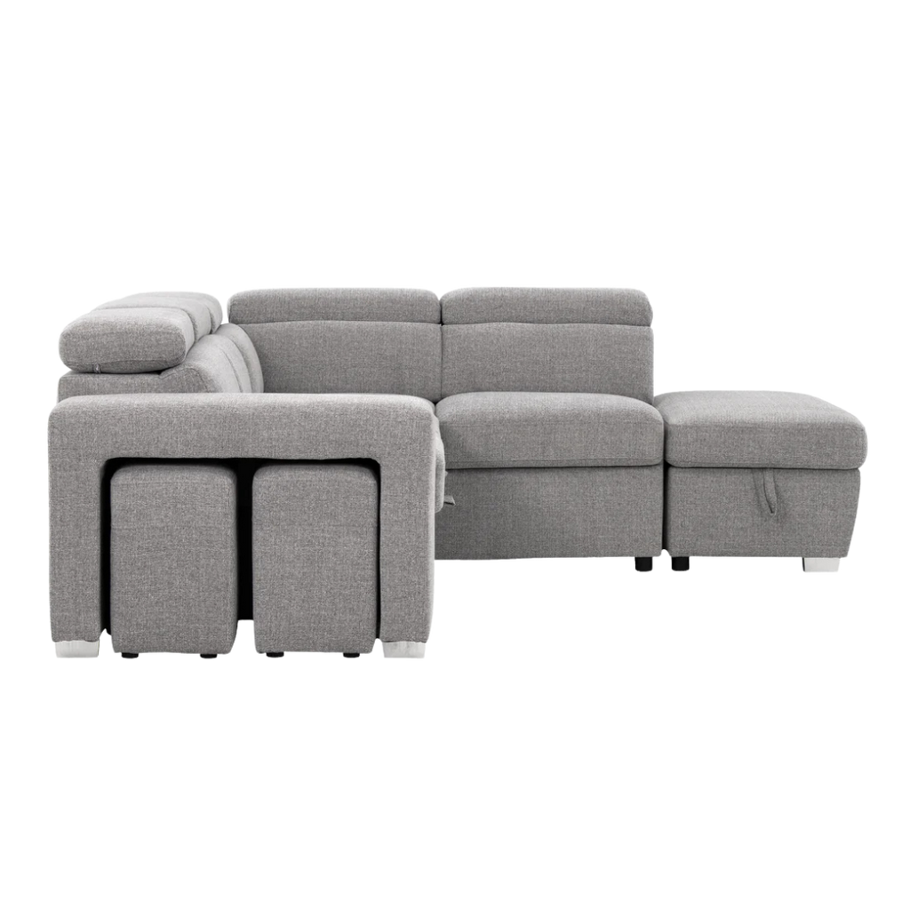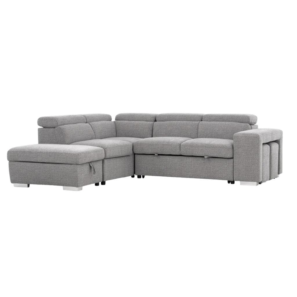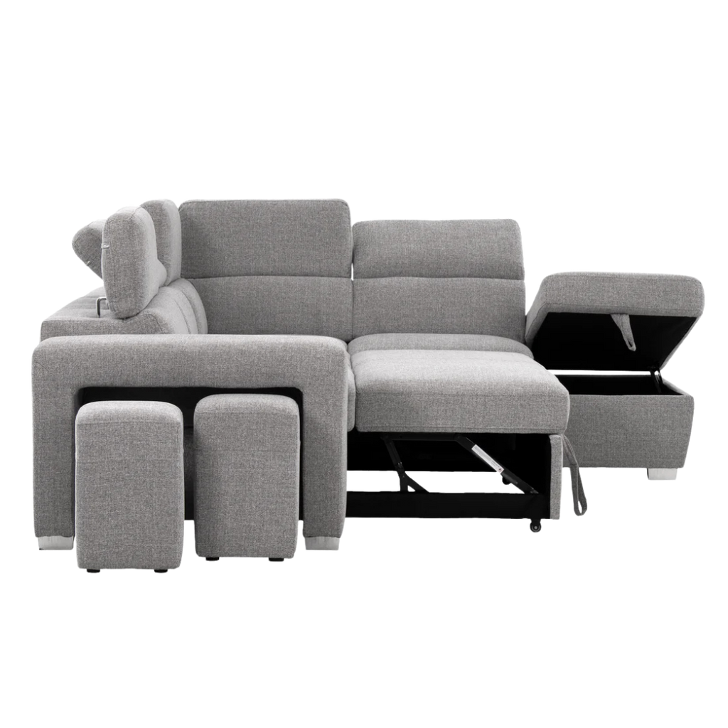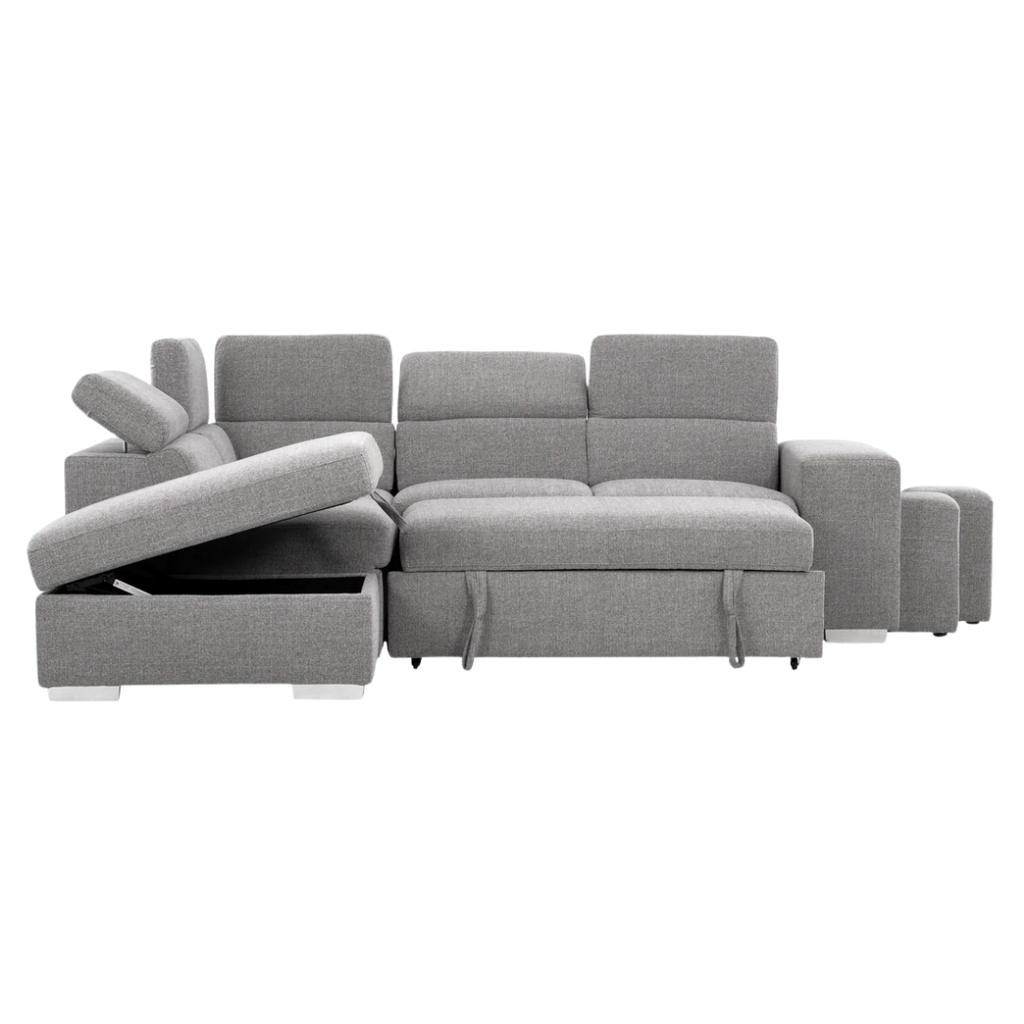 A modern sleeper sectional with left-facing chaise, integrated storage, and a pull-out bed designed for versatile daily living and guest accommodation.