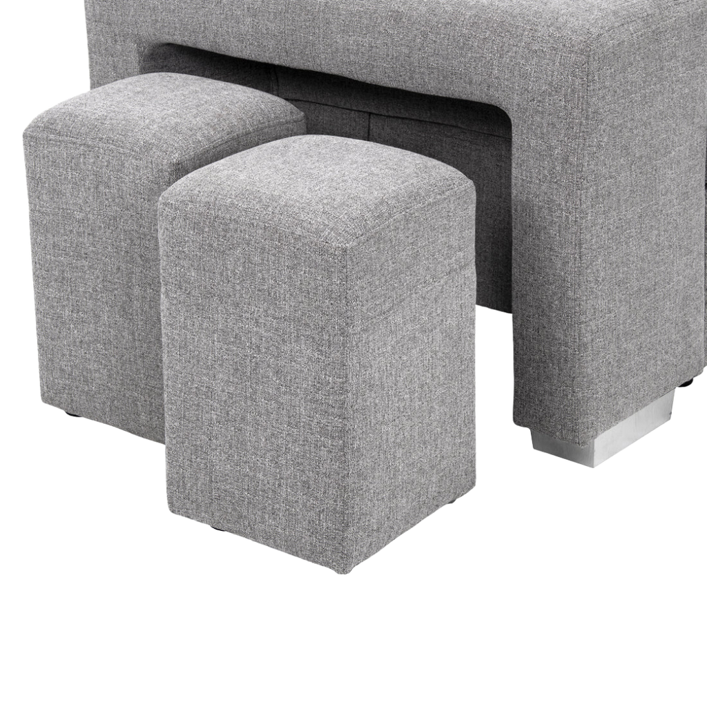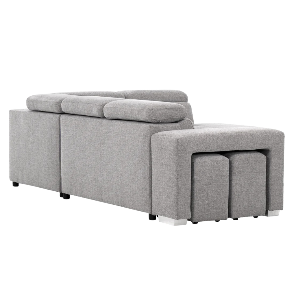 Built with pocket coil seating, high-density foam, and a solid wood/engineered wood frame, the Melaro provides durability and balanced support. Wrapped in a soft grey textured fabric, it blends effortlessly into contemporary interiors. Perfect for condos or family living spaces, it offers both daily comfort and multifunctional convenience.