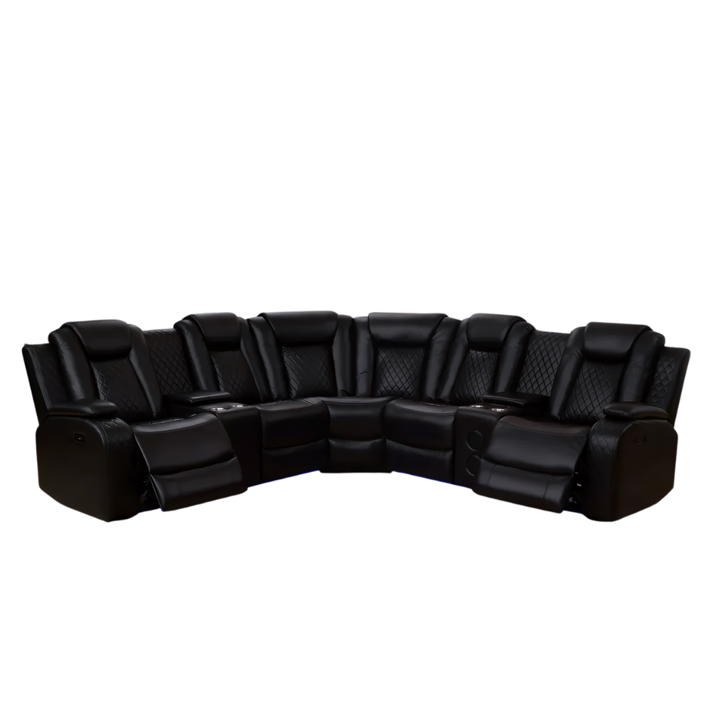A premium air-leather modular recliner sectional designed for immersive comfort, modern lounging, and elevated home-theatre living.
