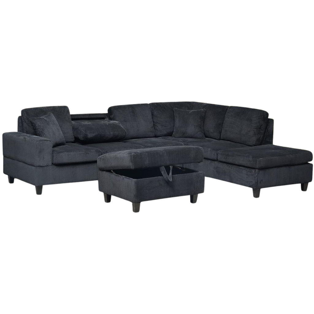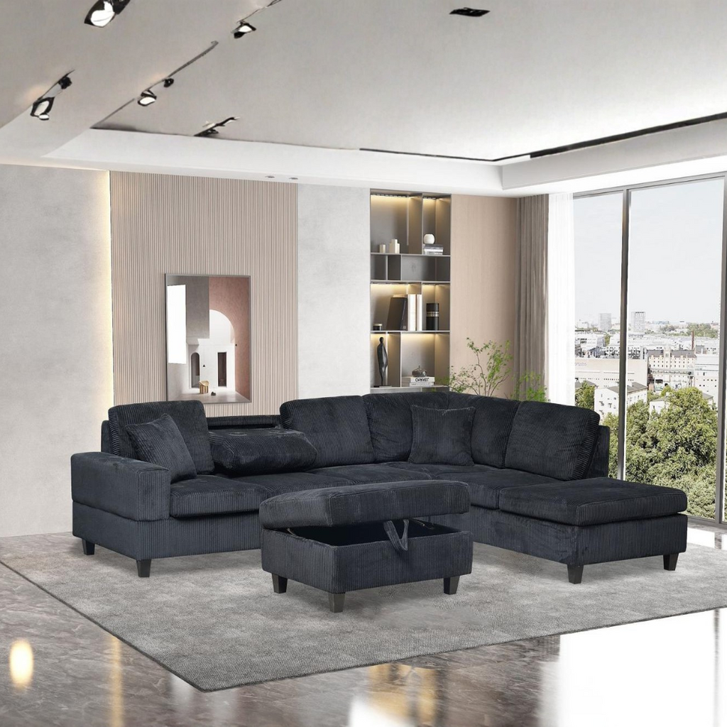 A modern velvet sectional designed for comfort, flexibility, and everyday style. Perfect for medium and large living spaces.