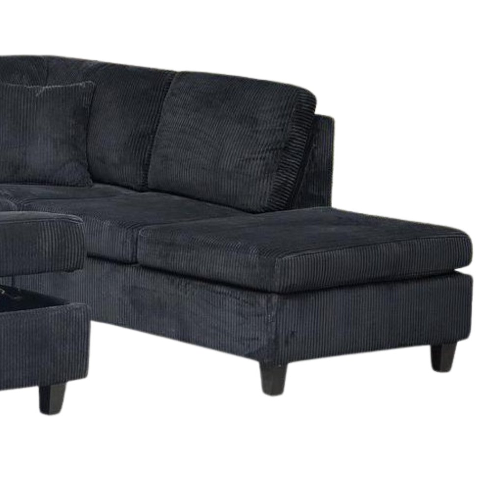 The Miro sectional brings a perfect balance of comfort and modern design. Wrapped in soft black velvet, it adds warmth and elegance to any décor while offering a relaxed, inviting feel. The wide cushions and lounge-friendly profile make it an ideal choice for daily use and entertaining.