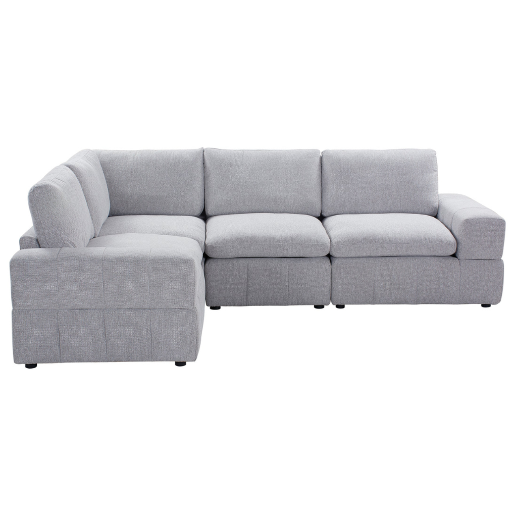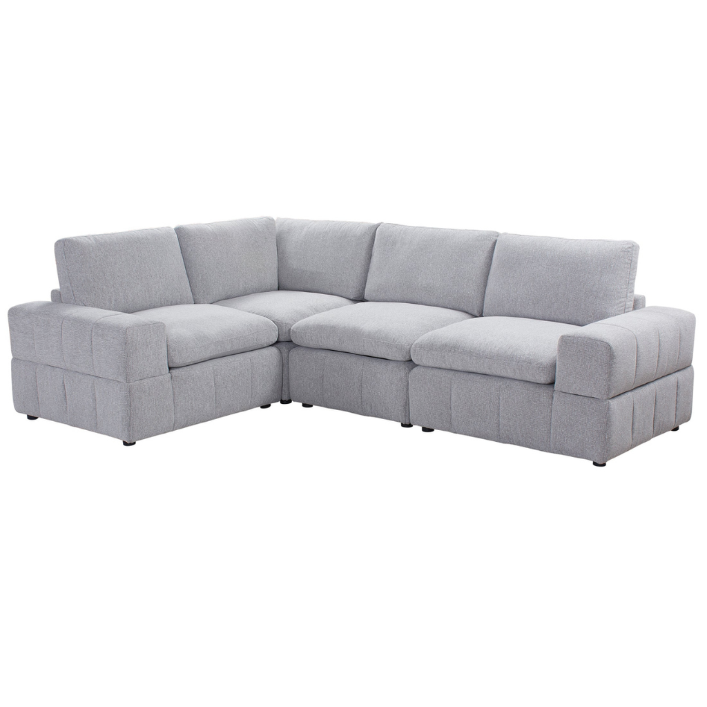 A modern 4-piece modular sectional designed for comfort, flexibility and clean aesthetics.