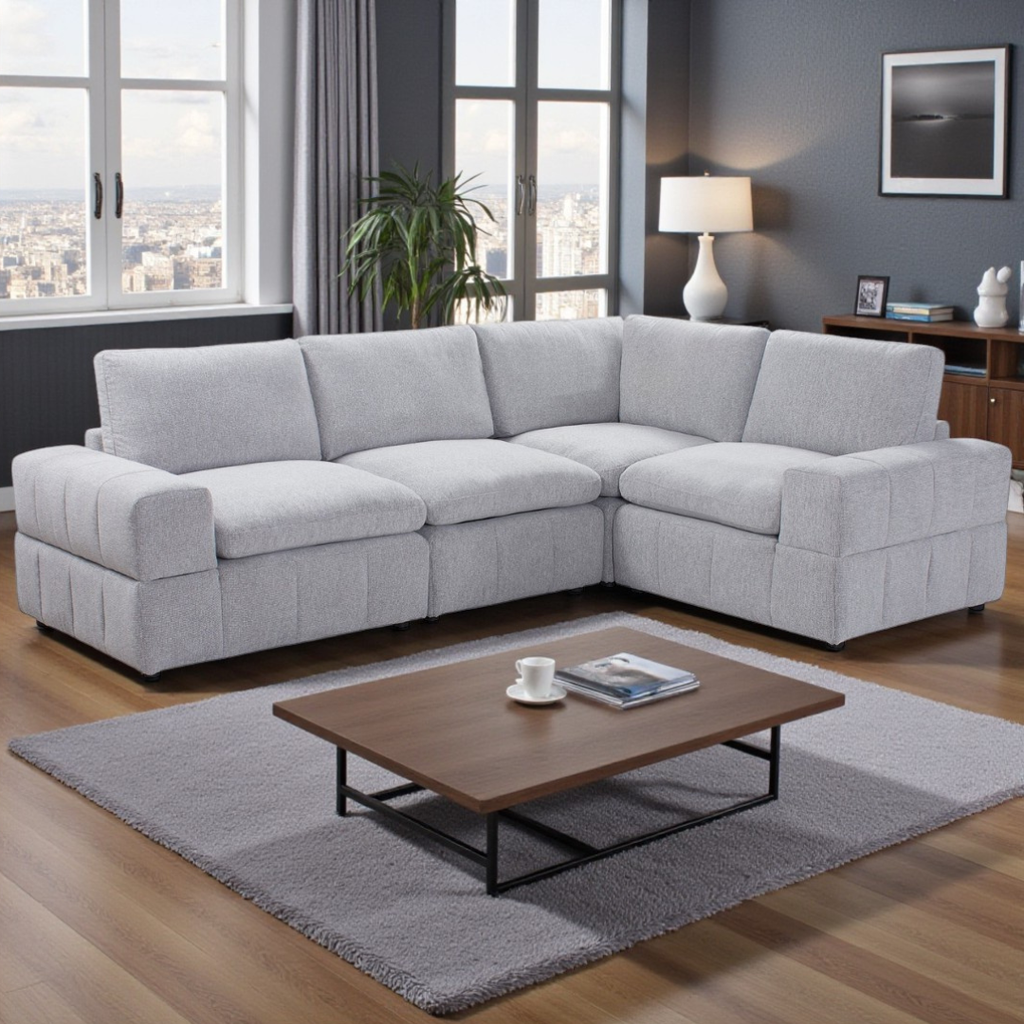 Perfect for corner layouts and open living spaces needing a soft, contemporary seating solution.