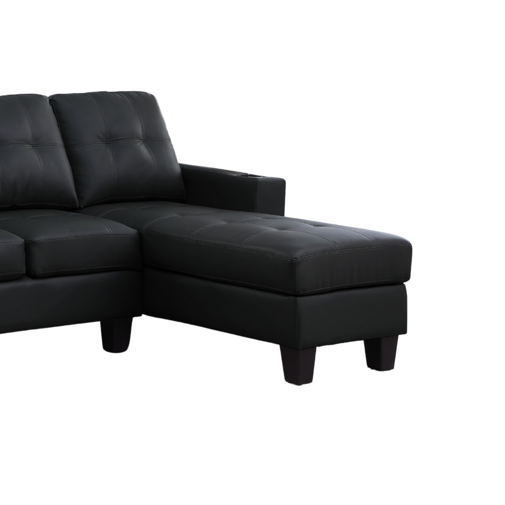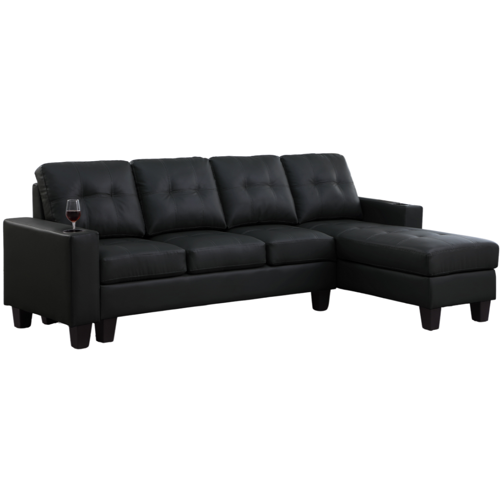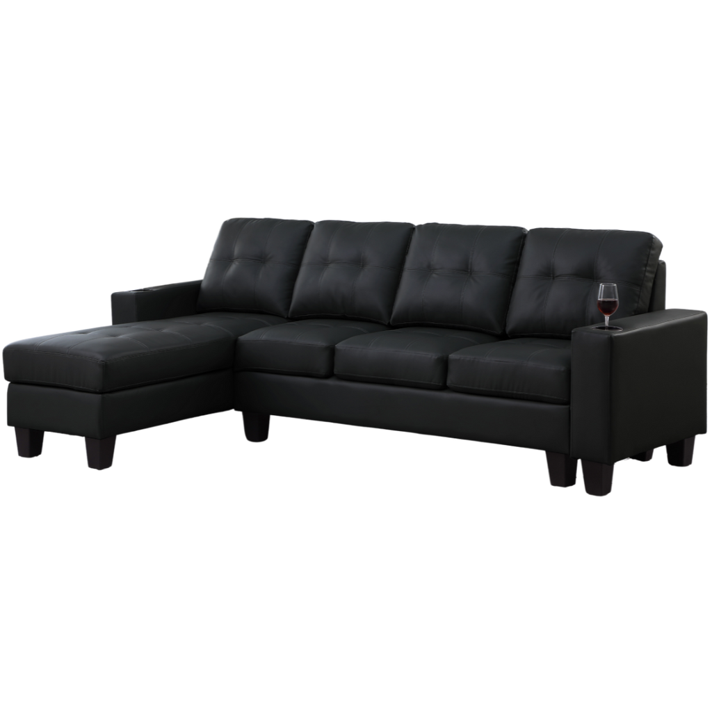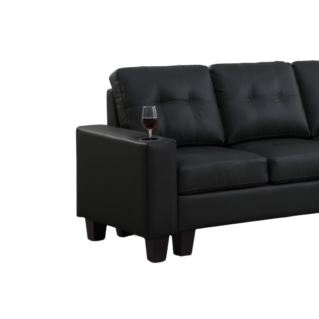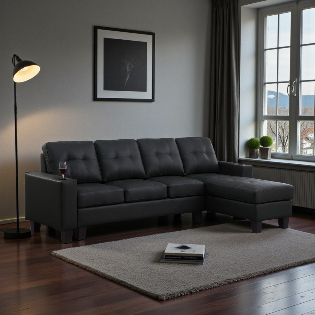 With integrated cupholders and supportive seating, this sectional is built to handle daily use without sacrificing style. Its wipe-clean surface and durable structure make it a practical choice for families, rentals or high-traffic living spaces.
