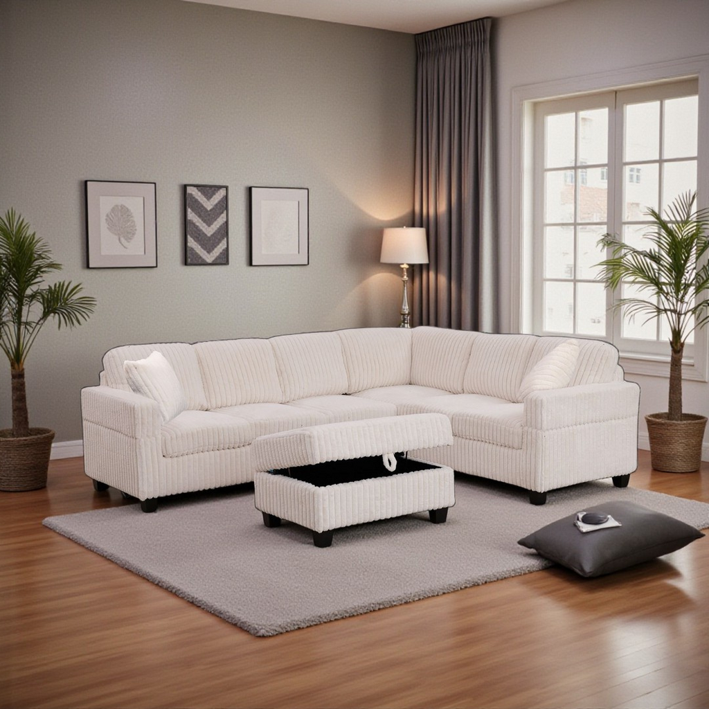 A modern oversized reversible sectional designed for soft comfort and everyday practicality. Includes a matching storage ottoman.