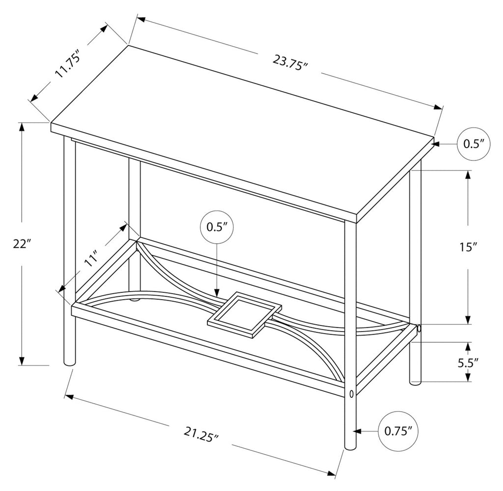 • Stylish Two-Tier Design – Upper surface in dark taupe wood-look finish, plus a lower black metal shelf with curved and square detailing.