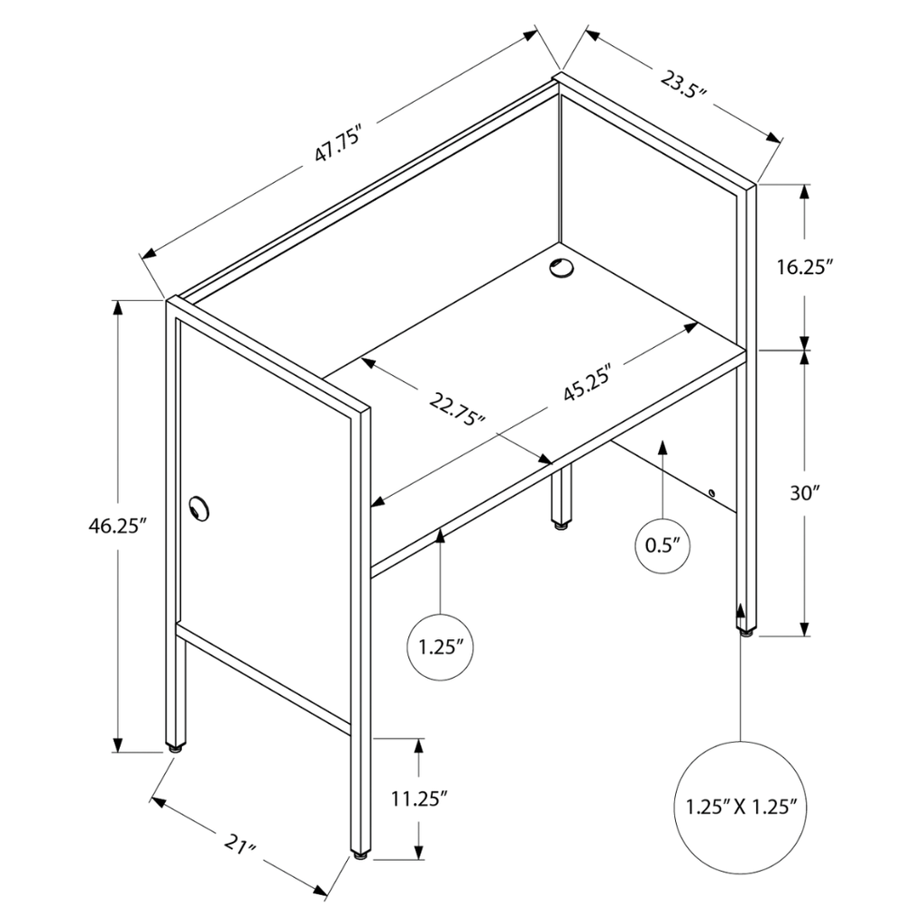 The easy-to-assemble desk includes a cable management hole in the corner to keep cords neatly organized and out of the way, making it an ideal space saver for your cubicle. Its smooth and easy-to-clean top ensures a pristine work surface at all times. With its sleek design, this workstation is perfect for focused writing, studying, or other office tasks. This cubicle can be placed side-by-side in commercial office environments to create efficient workstations or in school libraries for quiet study time. The possibilities are endless!
