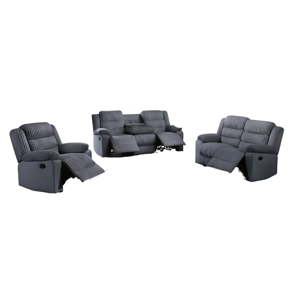 With its soft corduroy-textured fabric and plush multi-layered cushioning, the Plush set provides a warm and comfortable seating experience. The manual reclining system is smooth and intuitive across all pieces, making it ideal for movie nights and everyday relaxation.
