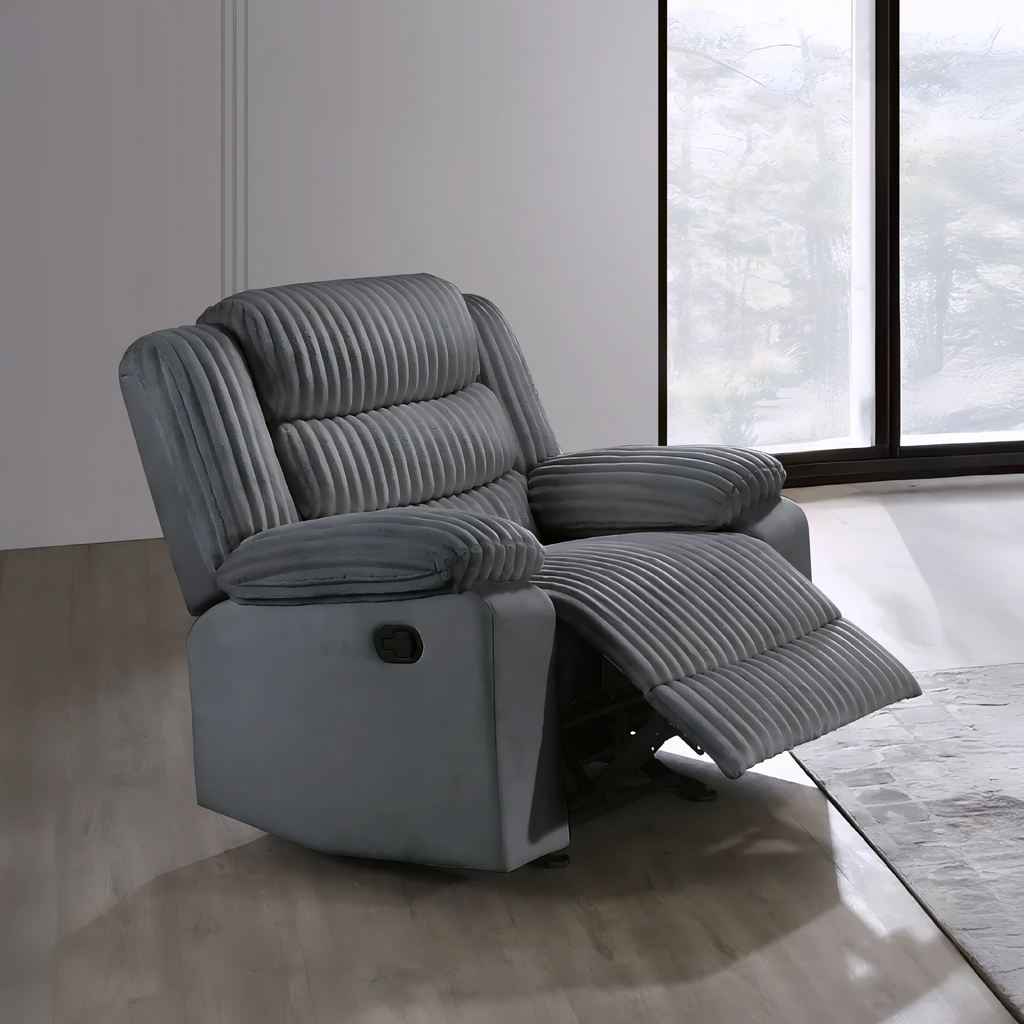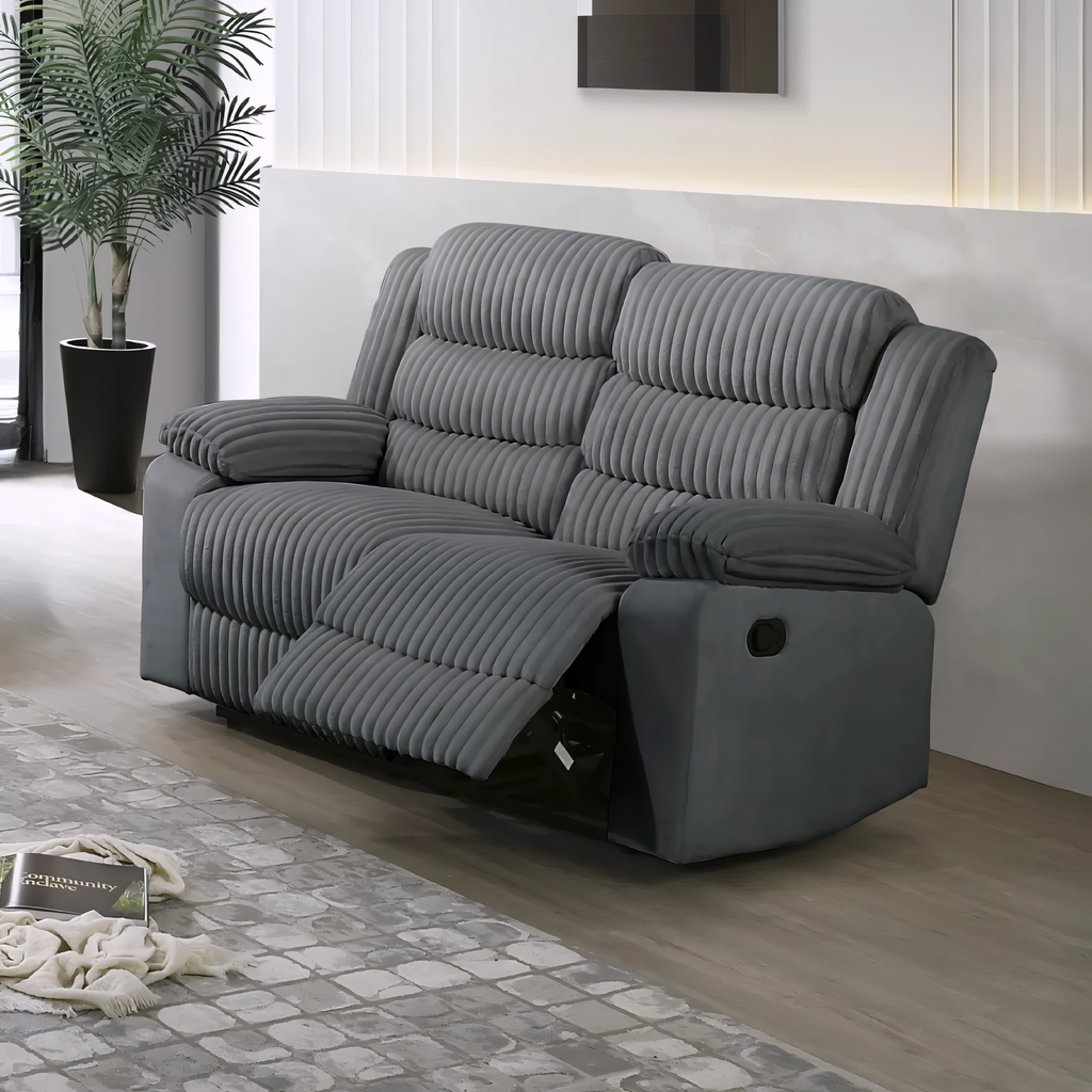 A cozy velvet corduroy manual recliner set featuring textured upholstery, soft cushioning, and smooth reclining built for everyday comfort and function.
