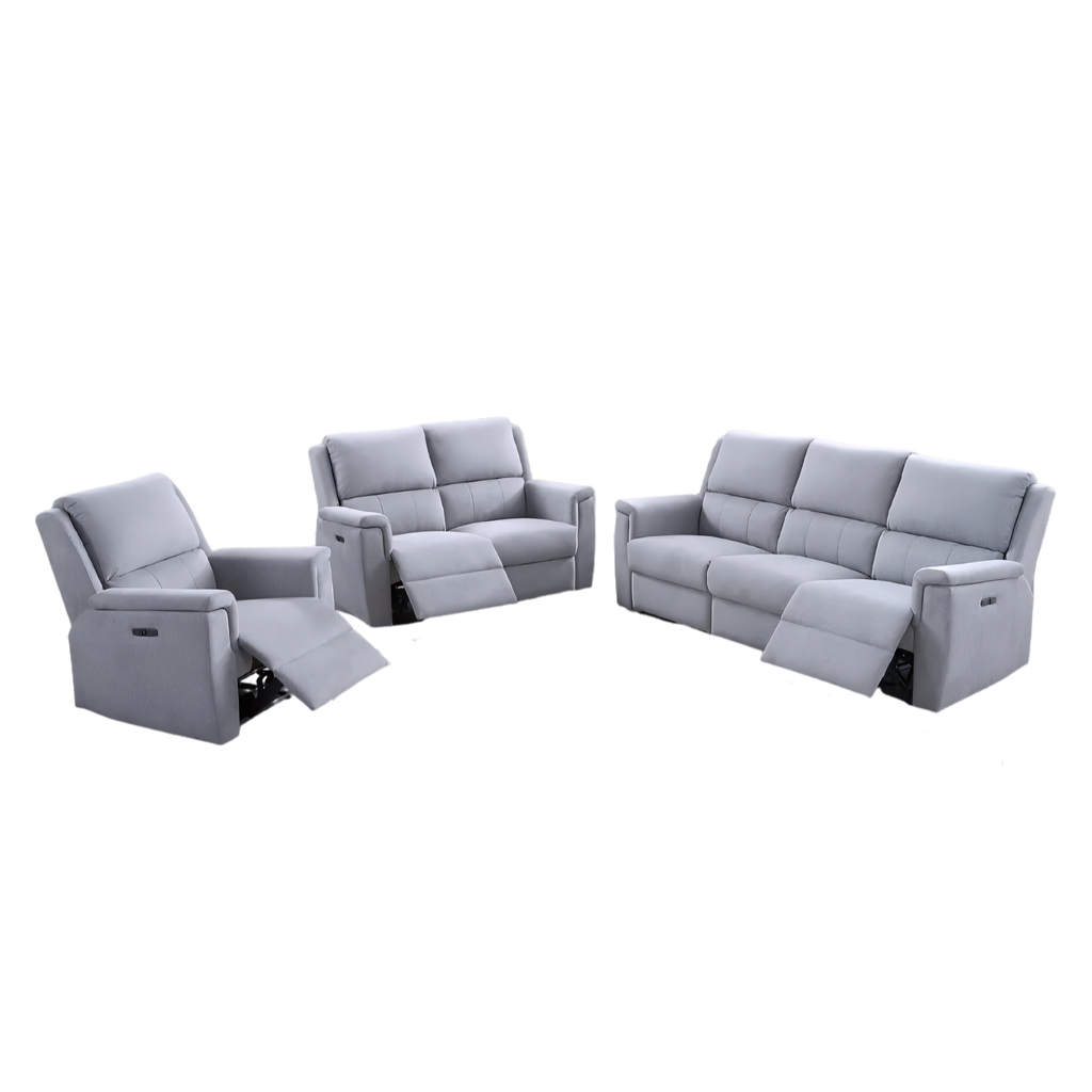 Ragnar brings together modern comfort, functionality and clean design. Upholstered in soft-touch grey fabric, this 3-piece power recliner set is engineered for relaxation, offering smooth power motion and supportive cushioning across all seats.