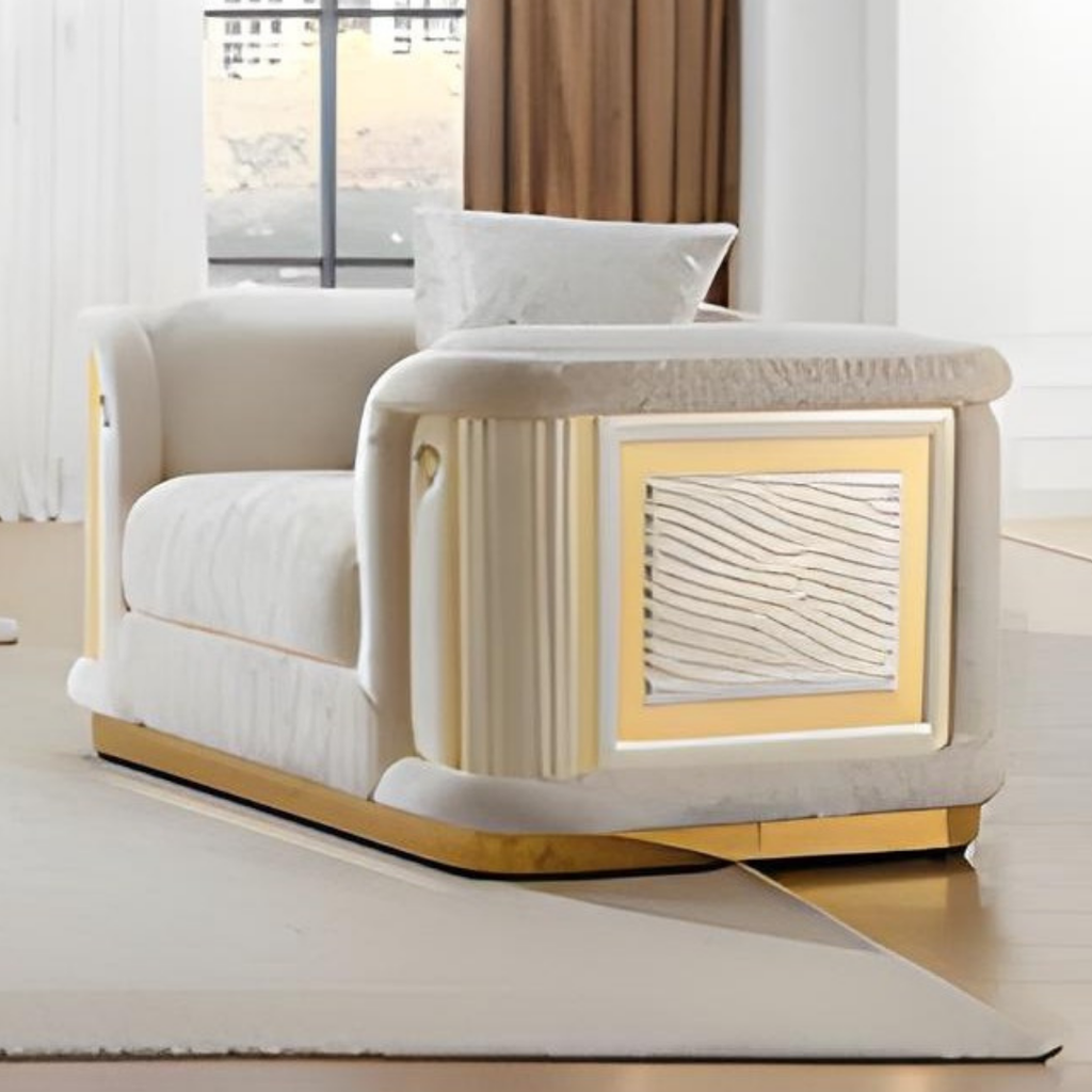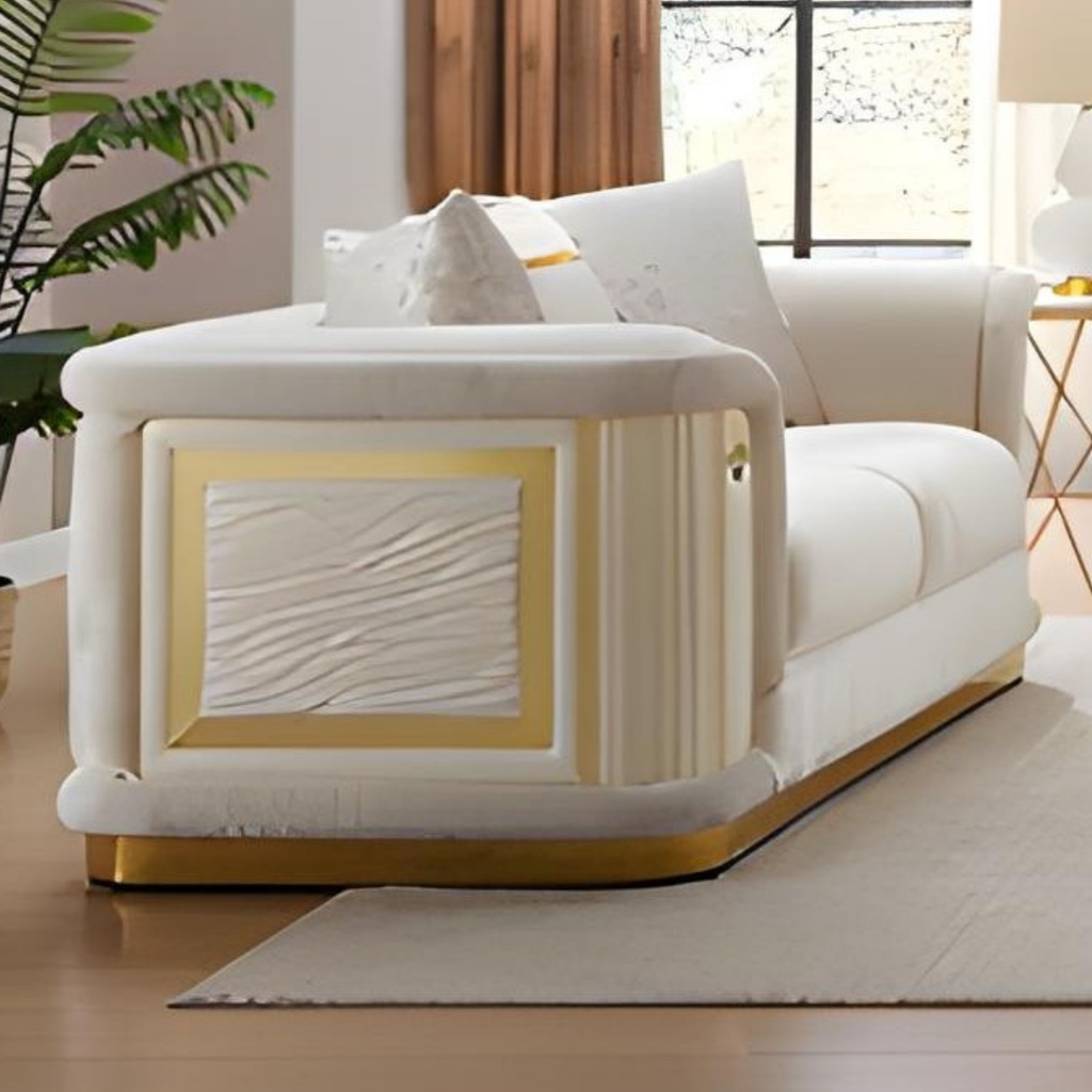 The Safi Beige Collection combines contemporary elegance with exceptional comfort. Wrapped in soft, durable fabric and complemented by matte wood panels enriched with gold detailing, each piece creates a sophisticated visual impact. The generous seating offers a plush, supportive feel, making the set perfect for both everyday relaxation and guest entertaining. Its warm neutral palette and refined craftsmanship make Safi an ideal centerpiece for any modern living room.