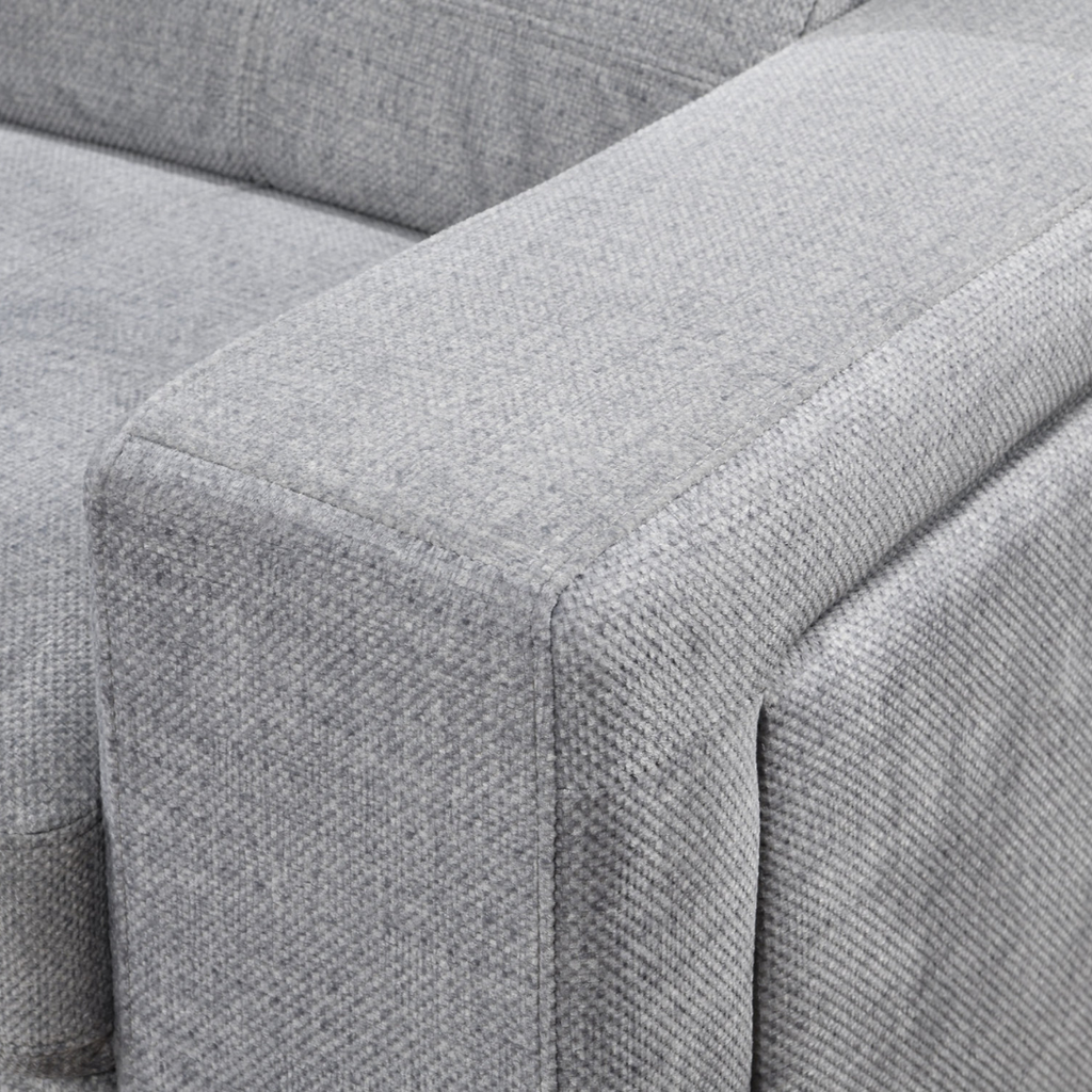 A built-in charging station and a chrome cup holder add everyday practicality. Wrapped in soft grey fabric with a clean, contemporary silhouette, the Saviro fits seamlessly into condos, living rooms, or multipurpose spaces. Available in both left-hand and right-hand facing configurations.