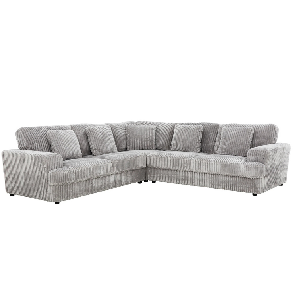 The Tarra sectional brings a relaxed, inviting vibe to any living space. Its soft corduroy fabric adds warmth and character, while the deep foam-and-coil cushions provide lasting support you can rely on. Designed as a 3-piece layout (loveseat + wedge + loveseat), Tarra maximizes seating space without feeling bulky.