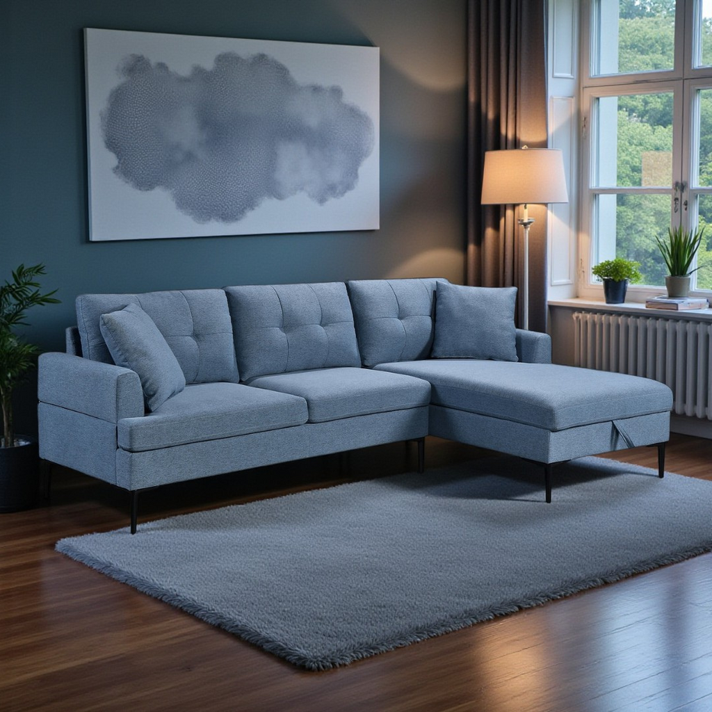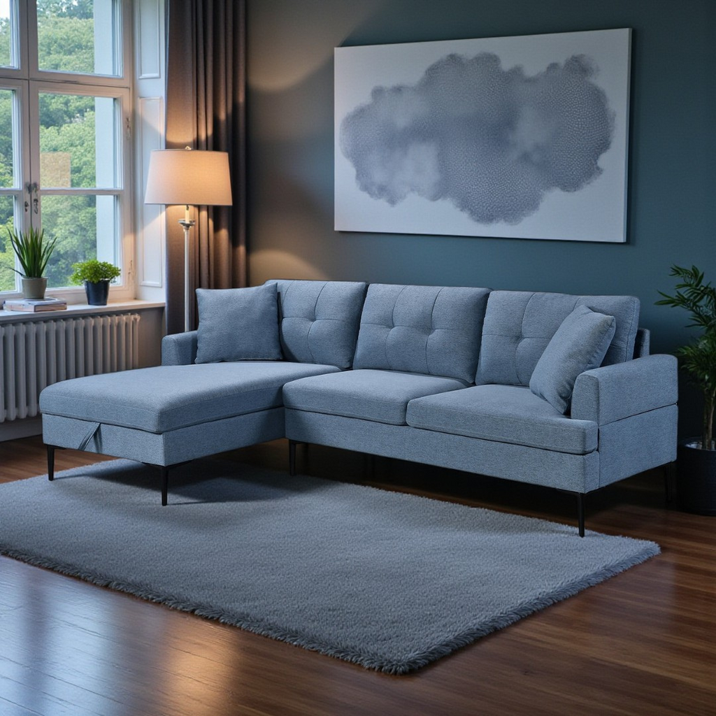 The Vara Blue sectional brings elegance and practicality to any living room.