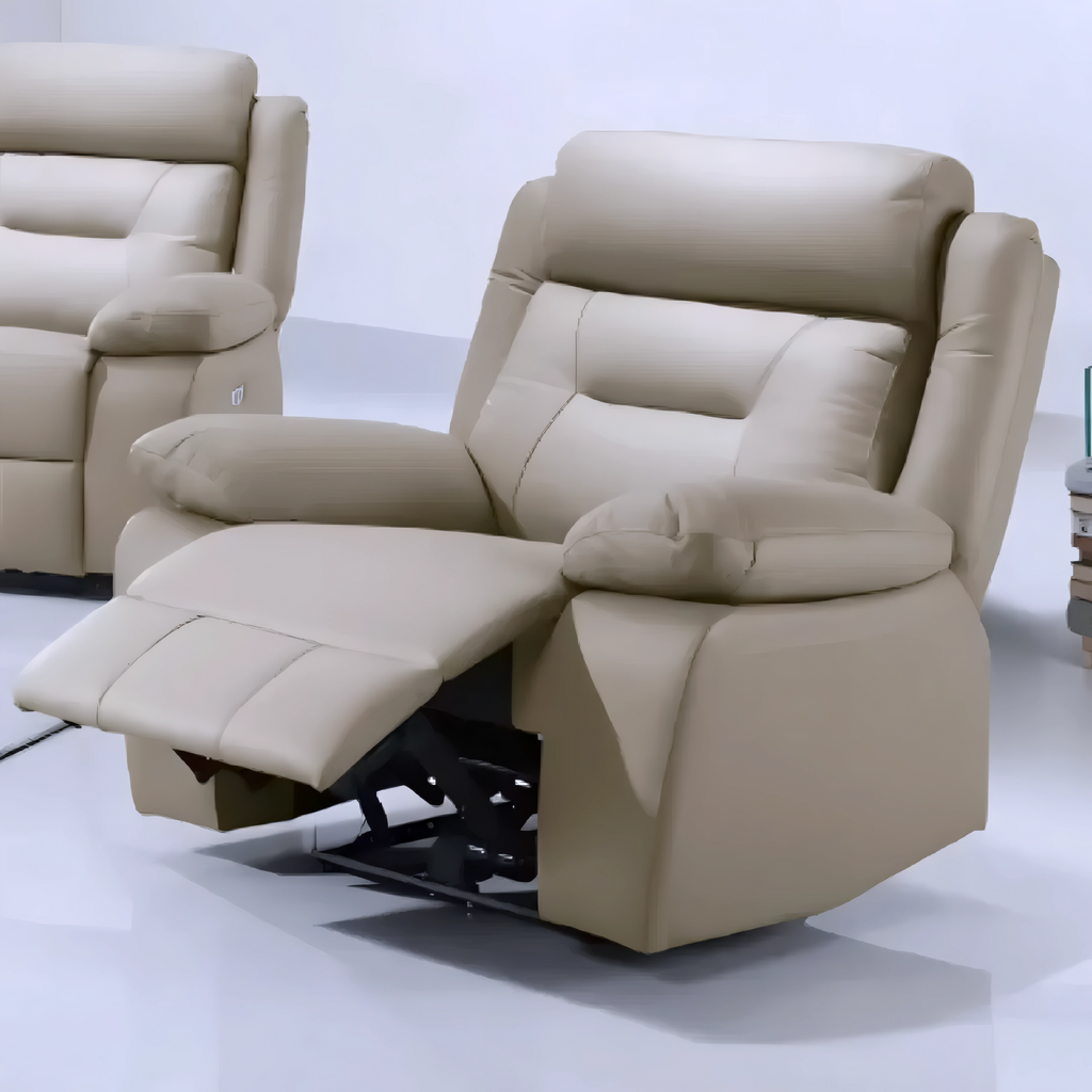 Velmar Beige delivers the perfect mix of modern styling and functional comfort. Upholstered in supple beige leather-match, this power recliner set is built for daily relaxation. Each piece features smooth electric reclining at the touch of a button, supported by plush backrests, padded arm cushions, and high-density seating designed for long-lasting comfort.