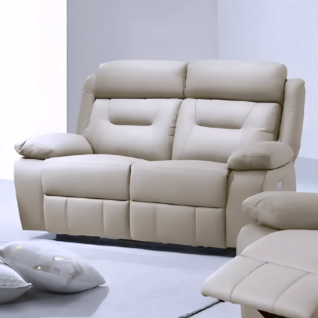 A modern 3-piece power recliner set crafted in soft beige genuine leather-match, offering smooth electric reclining, plush cushioning, and integrated USB charging—designed for everyday comfort and contemporary living.