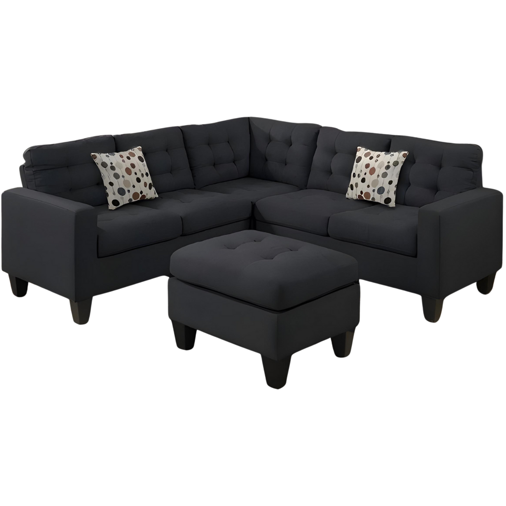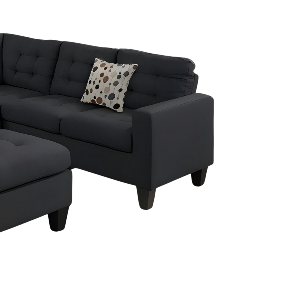 The Vento Black sectional blends comfort, adaptability and smart storage in a refined modern design. Its reversible chaise allows effortless adjustment between left or right layout, making it suitable for any living room configuration. Paired with a matching storage ottoman, it offers practical space for blankets, remotes and everyday essentials.