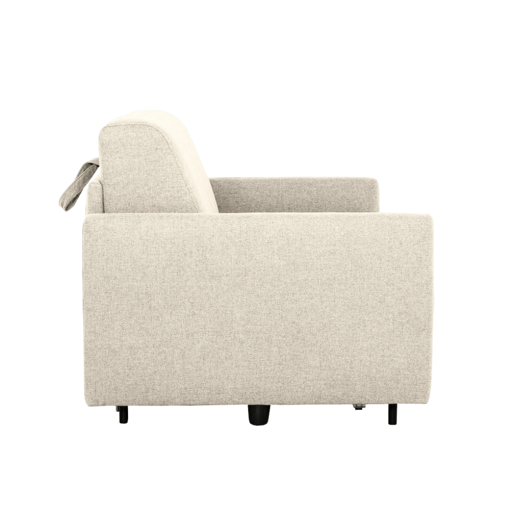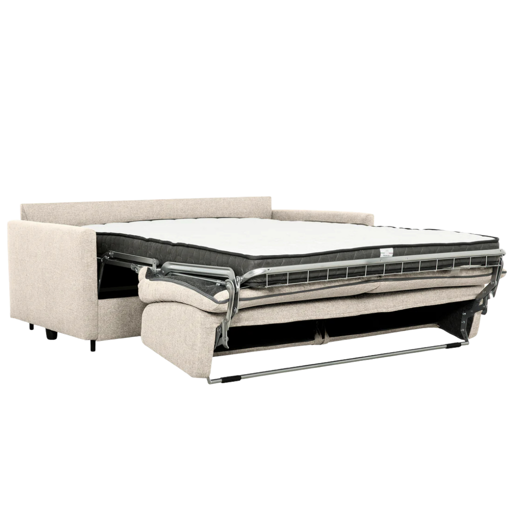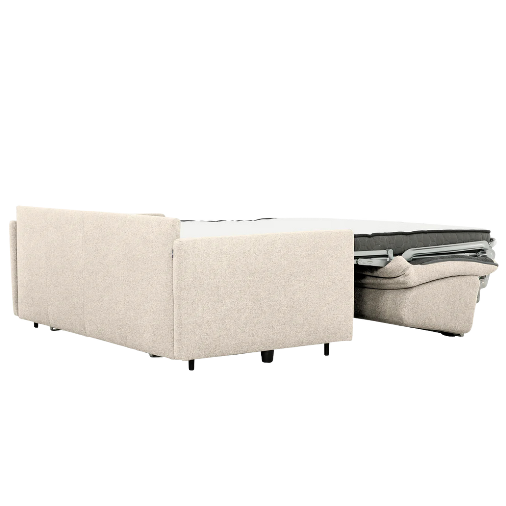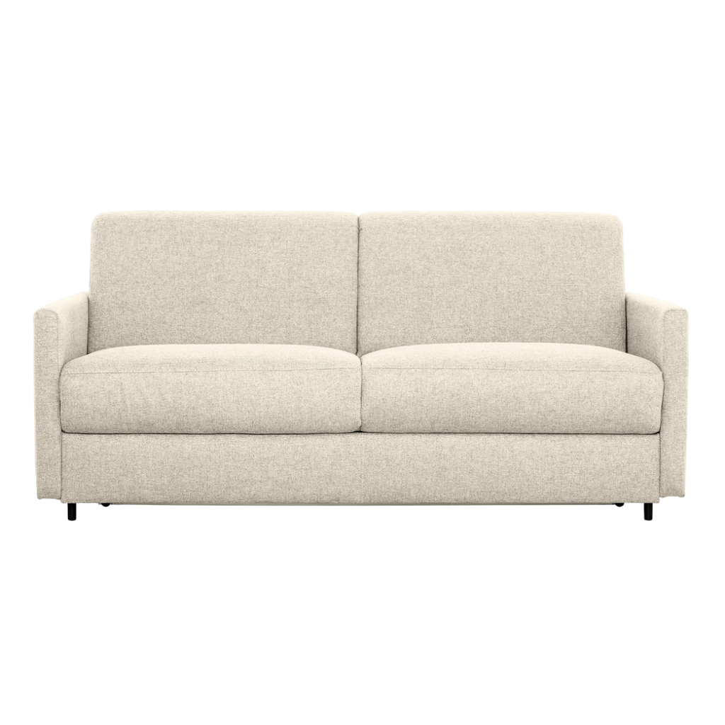 The Zarelo sofa bed transforms any room into a versatile guest space with a single pull. Its Italian mechanism reveals a full-size 5" memory foam mattress, providing exceptional comfort for overnight guests. Upholstered in beige woven fabric, it brings a soft and modern look to any living area.